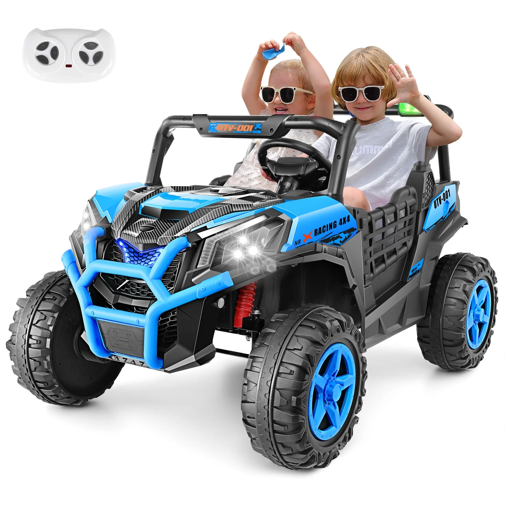 Farmdex 4WD 24 Volt Ride on Toys 2 XL Seater Ride on Cars with Remote Control, Battery Powered Electric Car for Kids, Off-Road UTV w/ 4*200W Motor, Bluetooth, Music, LED Lights, Blue