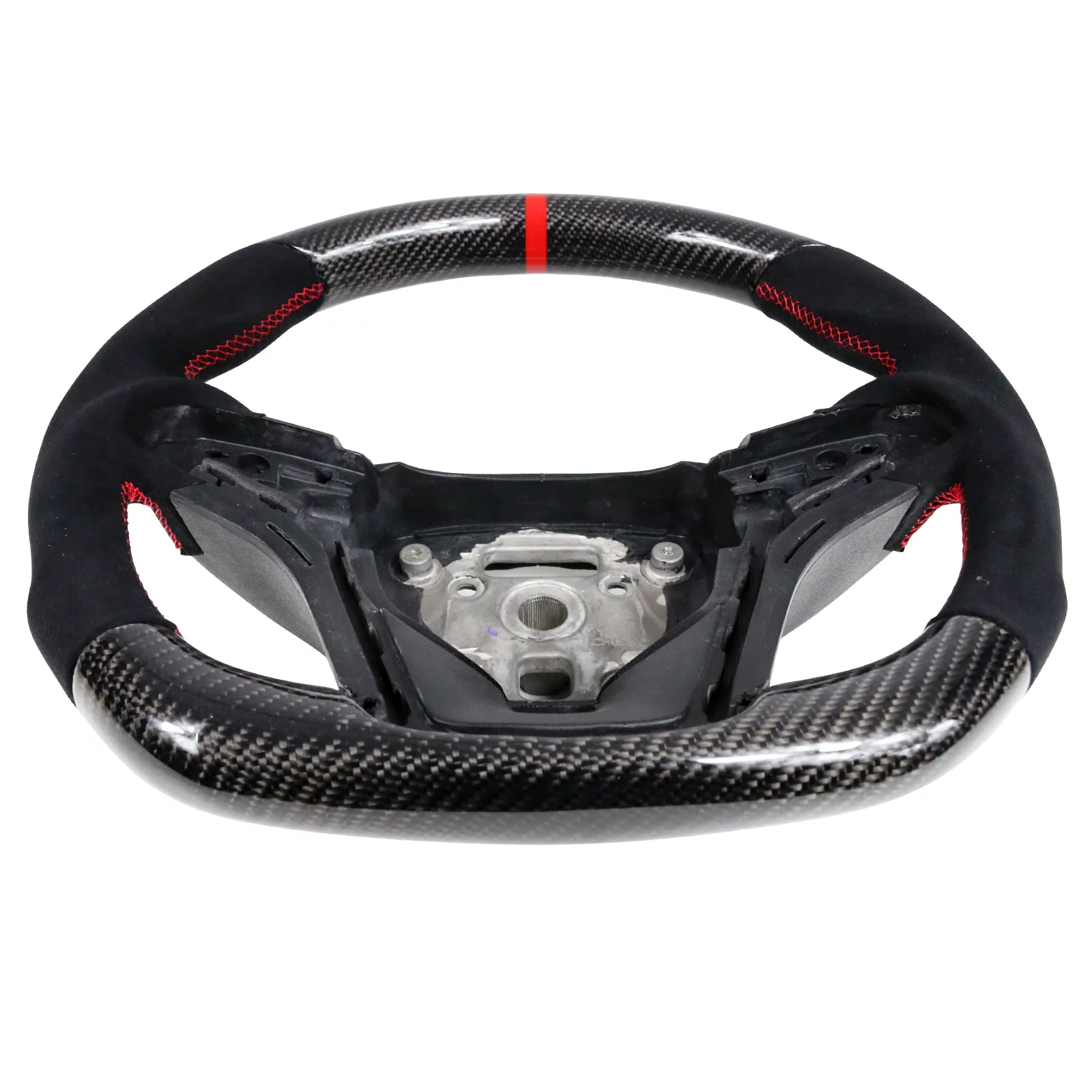 Ikon Motorsports Compatible with 12-15 Chevy Camaro Carbon CF & Alcantara Steering Wheel With Red Stitching & Indicator