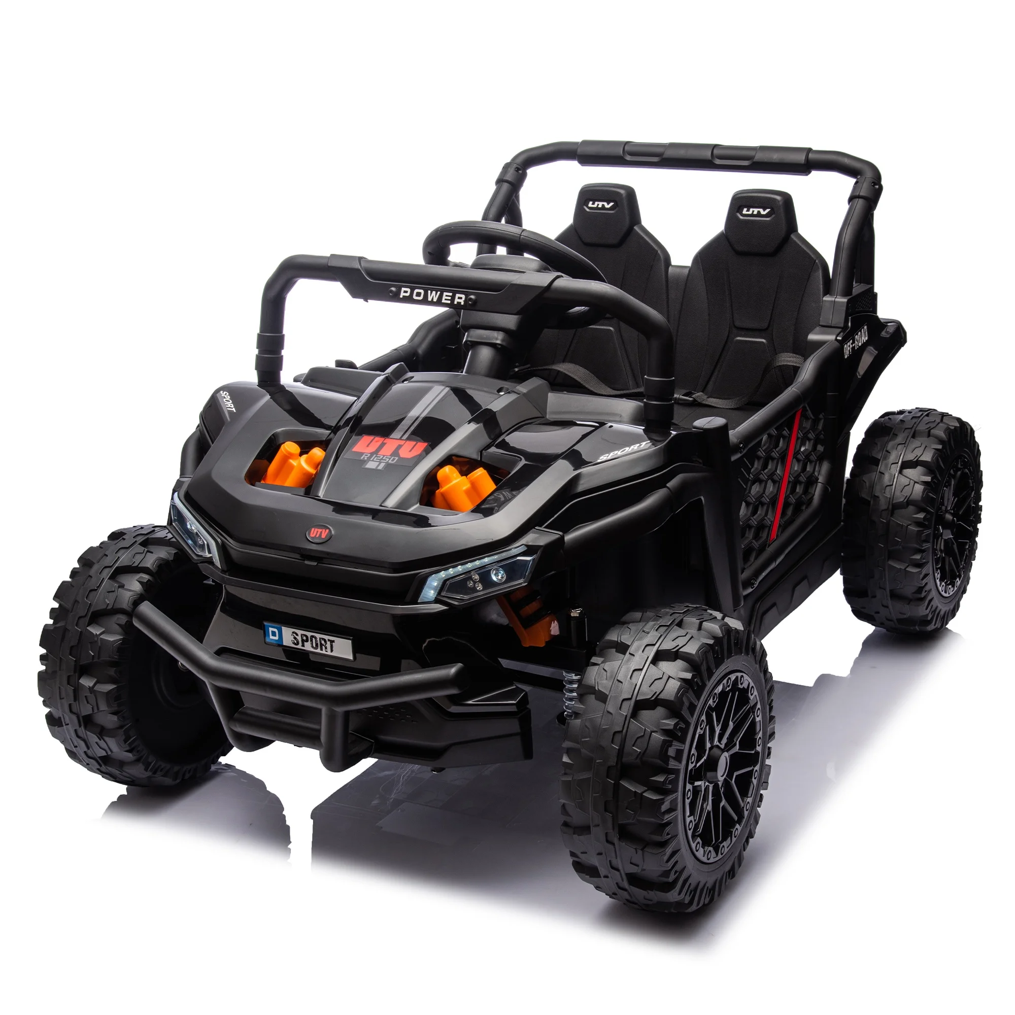 Ride on Toys Cars for Kids, 24V Battery Powered Ride on Truck UTV Car with Remote Control, Bluetooth, Music, LED, Safety Belts, 4 Wheel Suspension Electric Car for Kids Toddler 3-6, Black