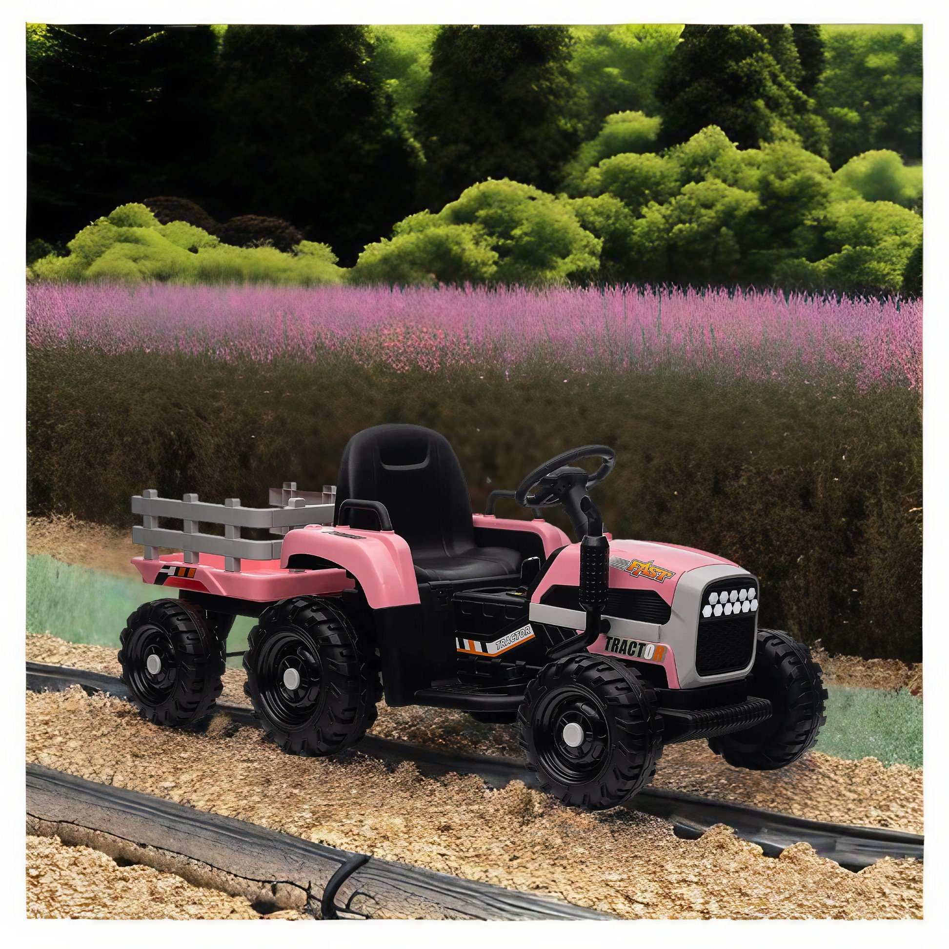 Ride on Tractor with Trailer,12V Battery Powered Electric Tractor Toy w/Remote Control,electric car for kids,Three speed adjustable,Power display, USB,MP3 ,Bluetooth,LED light,Two-point safety belt