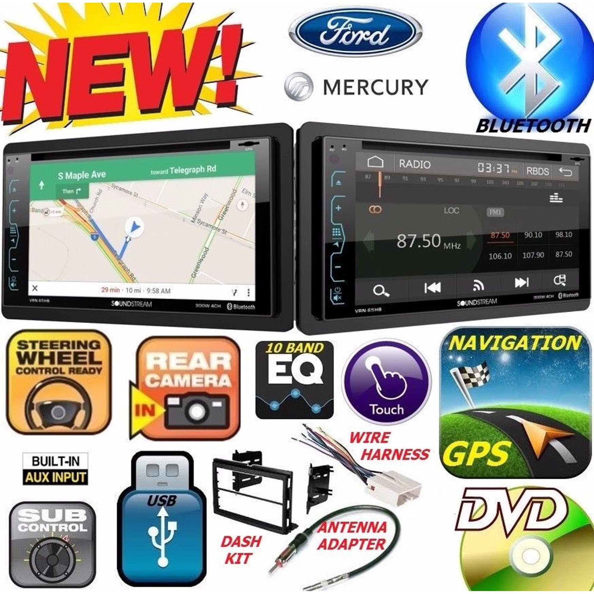 FORD MERCURY GPS NAVIGATION SYSTEM BLUETOOTH DVD CD USB AUX BT CAR Radio Stereo