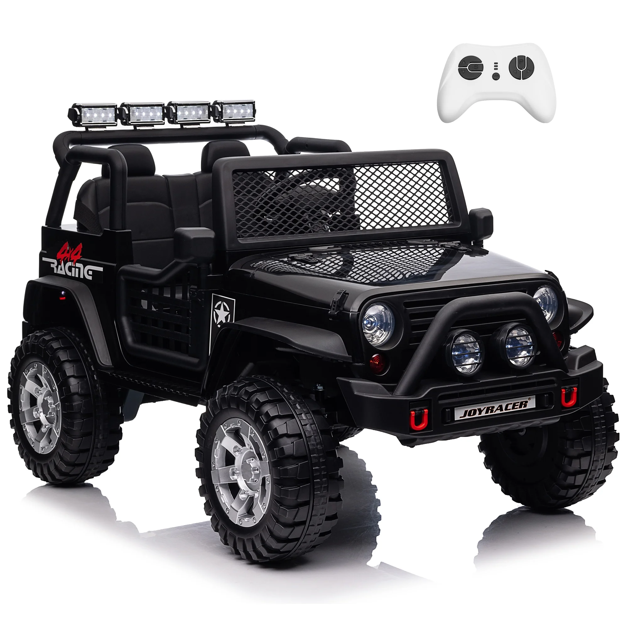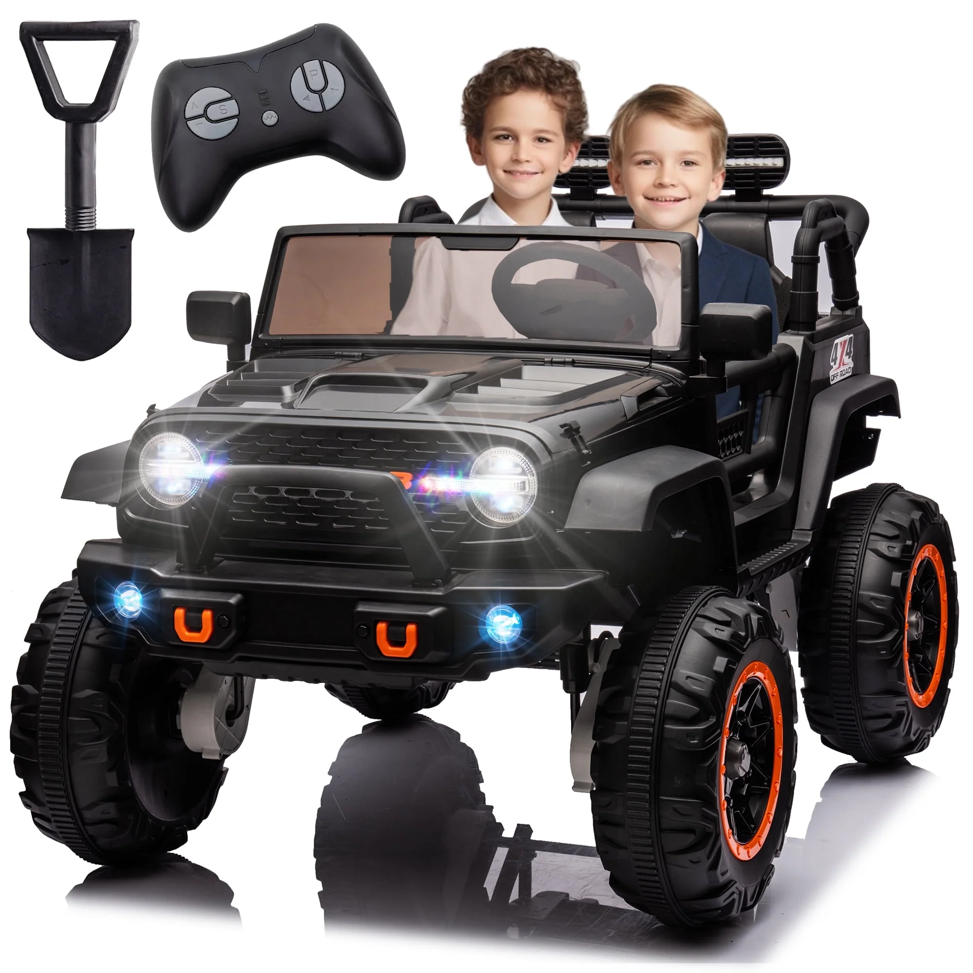24V 2 Seater Kids Ride On Car Truck with Remote Control, 4WD/2WD Switchable Kids Electric Vehicle with 20" Extra Wide Seat, 4 Powerful Engines, Soft Brake, Music, Suspension, LED Light (Black)