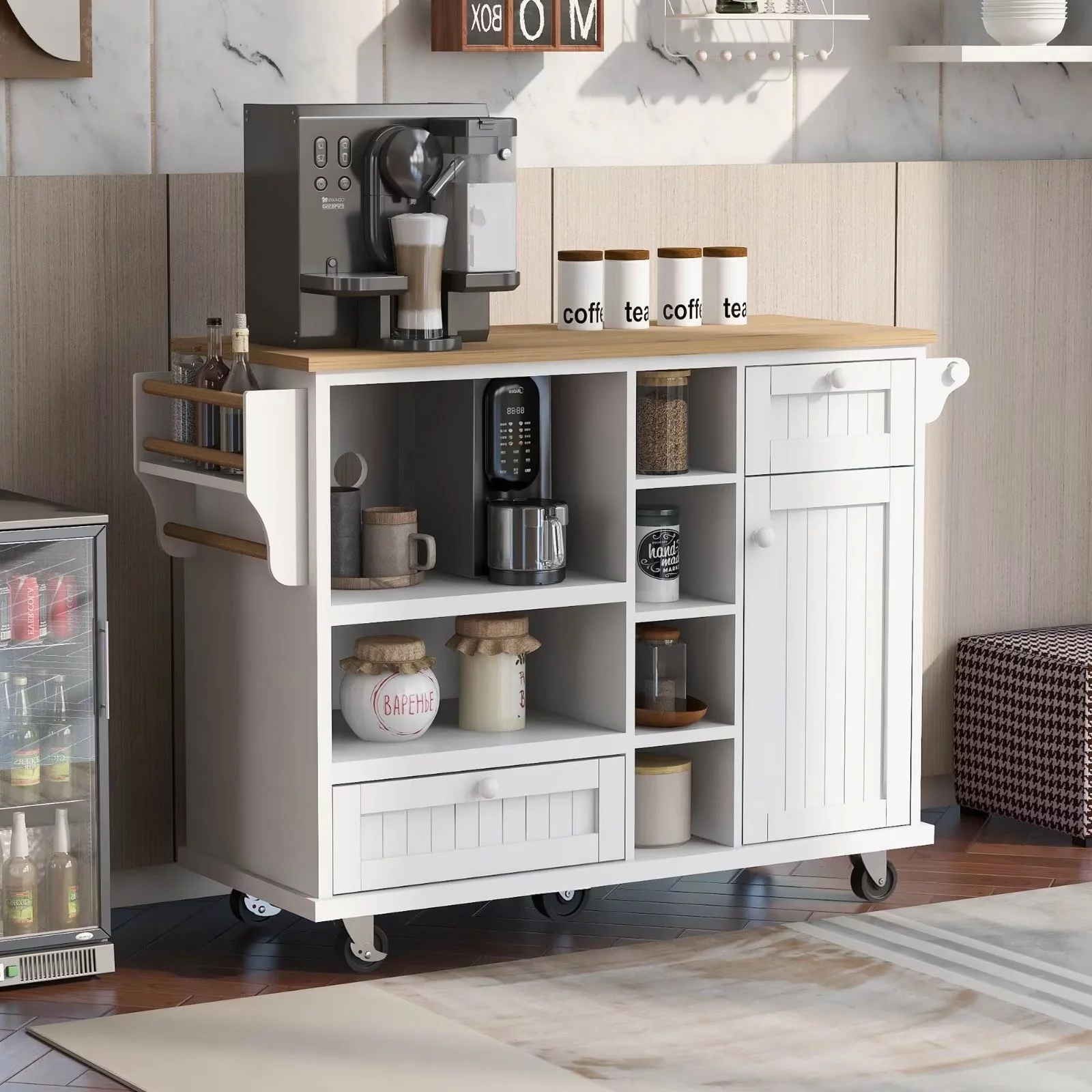 Rolling Bar Cart with Wine Storage, White