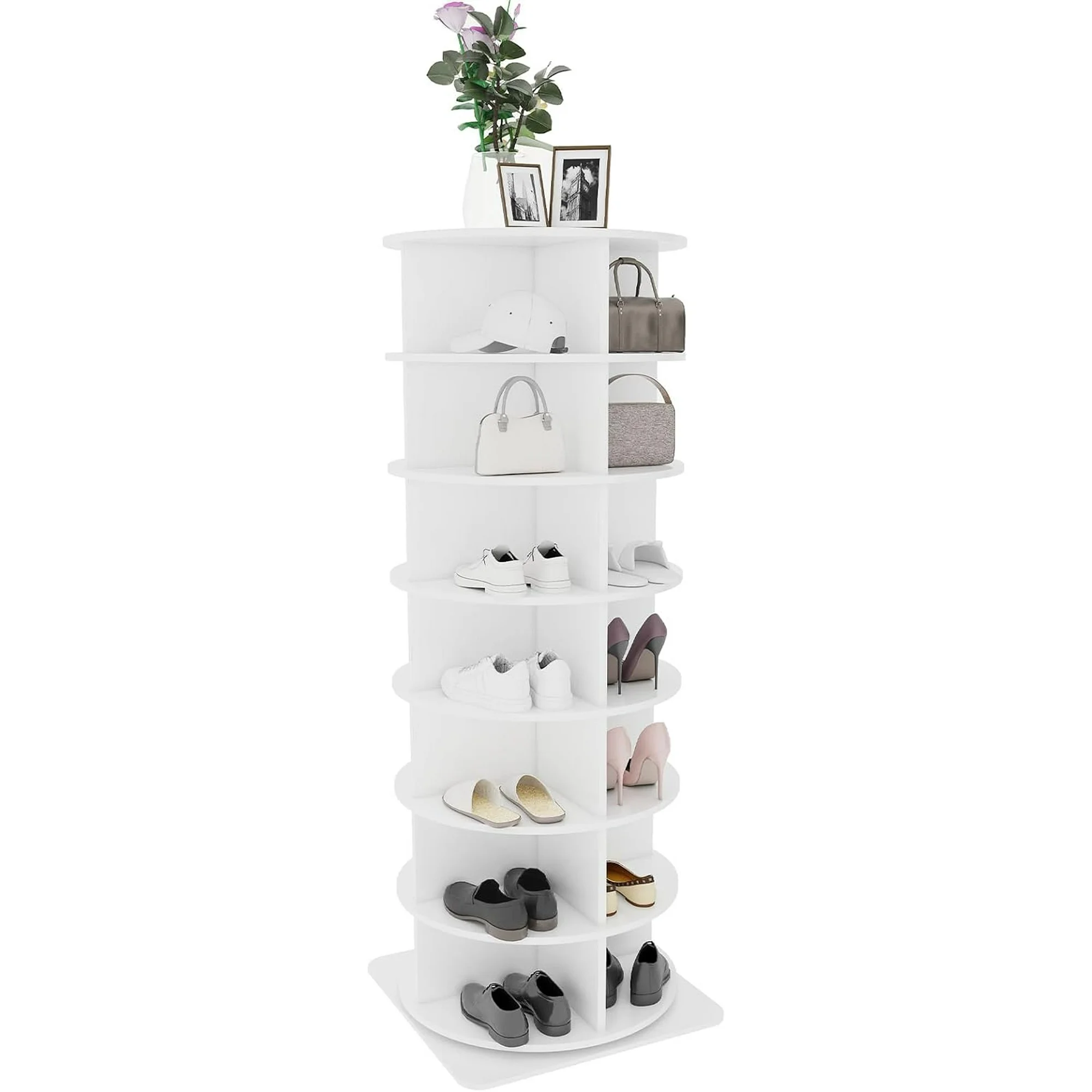 Rotating Shoe Rack Tower 7-Tier,Revolving 360 Shoe Rack Storage Round Carousel,MDF material,Vertical Handbag Rotate Shoes Closet Organization