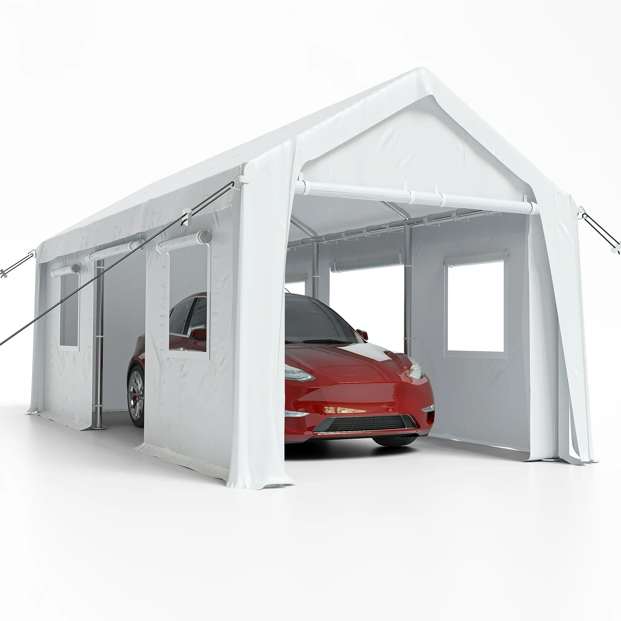 M optimized 10'x20' Car Carport, Heavy-Duty Carport with Roll-up Ventilated Windows & Doors, Carport Canopy, Height Adjustable Portable Garage for Car, Truck, Boat, Party