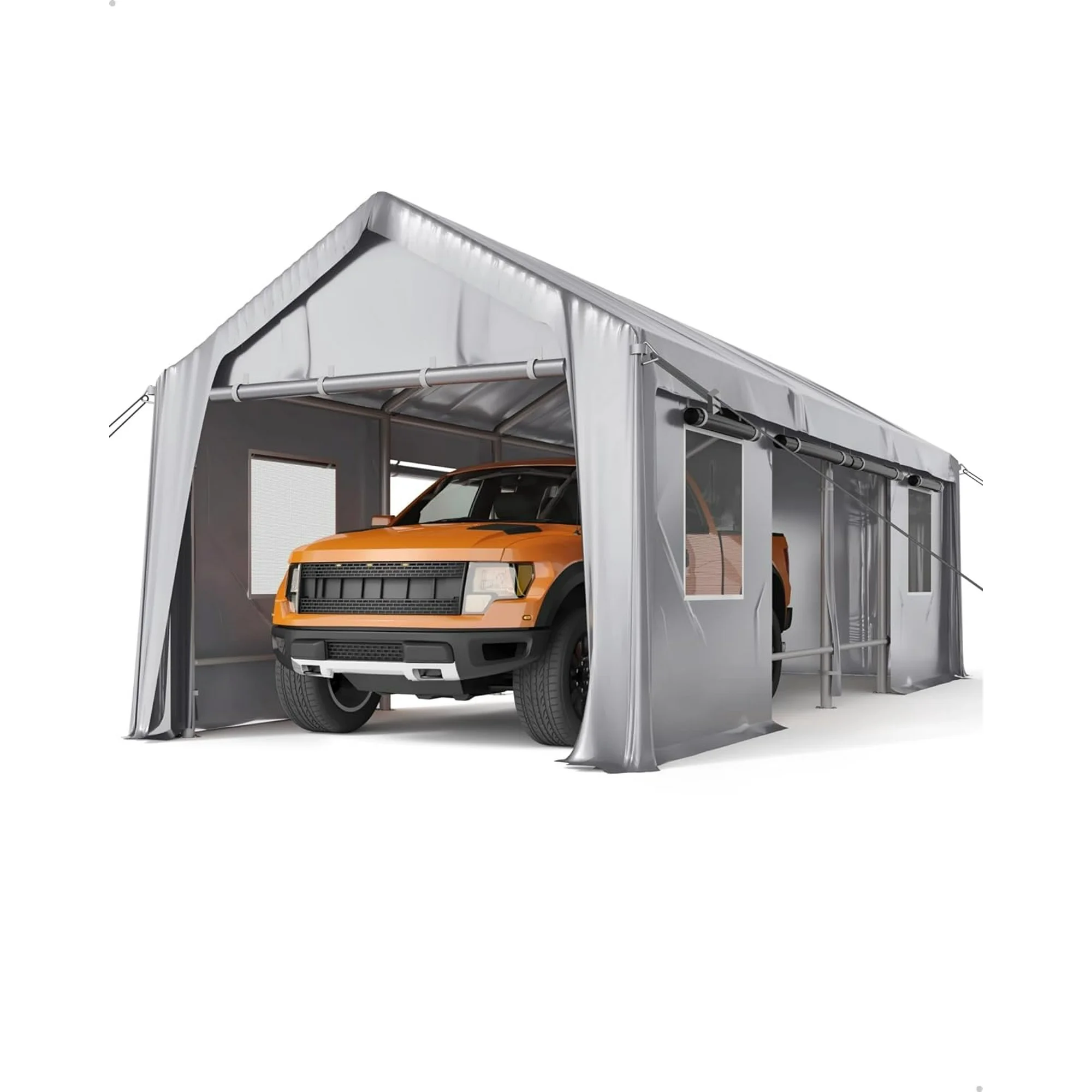 M optimized 25'x13' Windproof Carport Heavy-Duty Reinforced Poles & 14 mil PE Canopy, Extra Large Anti-High Wind Portable Garage for Full-Sized Pickup Truck and Bass Boat, Gray