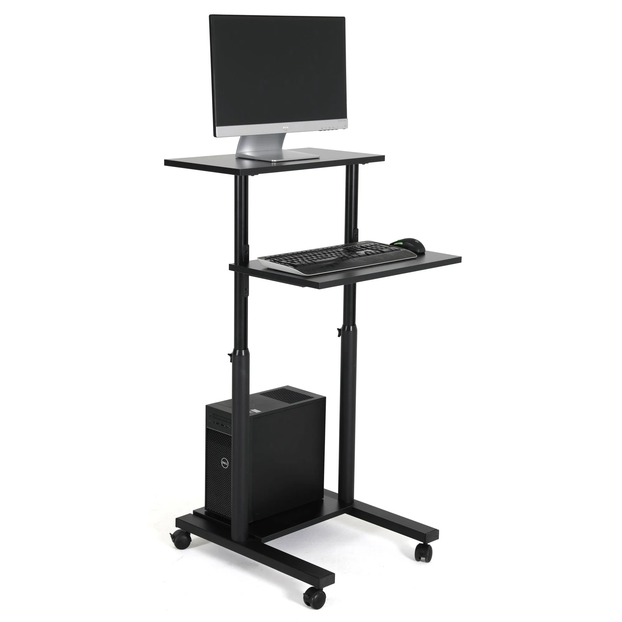 M&T Displays Height Adjustable Workstation on Lockable Wheels Moveable Home Office Desk Cart for Standing or Sitting Black