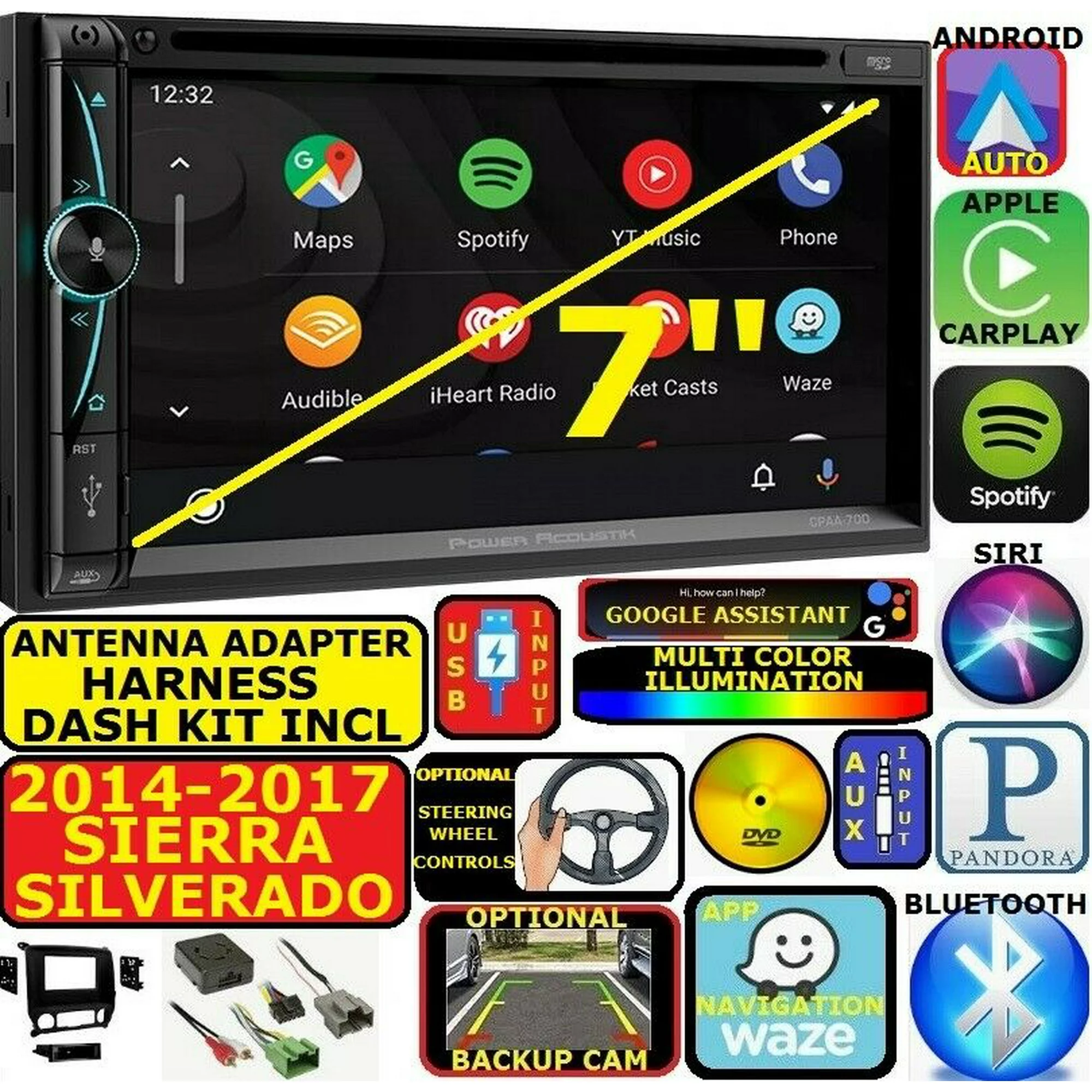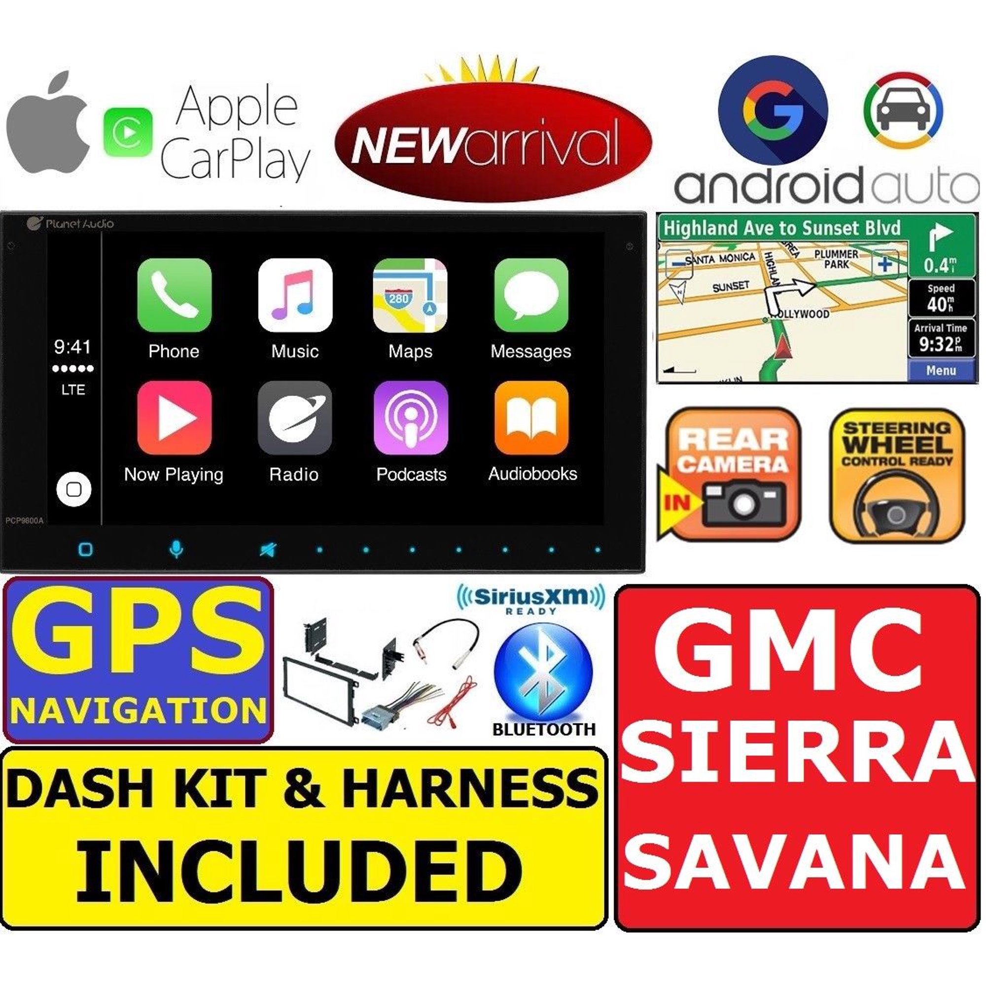 GMC SIERRA SAVANA GPS APPLE CARPLAY NAVIGATION (works with IPHONE) AM/FM USB/BLUETOOTH CAR RADIO STEREO PKG. INCL. VEHICLE HARDWARE: DASH KIT, WIRE HARNESS, AND ANTENNA ADAPTER WHEN REQIRED.