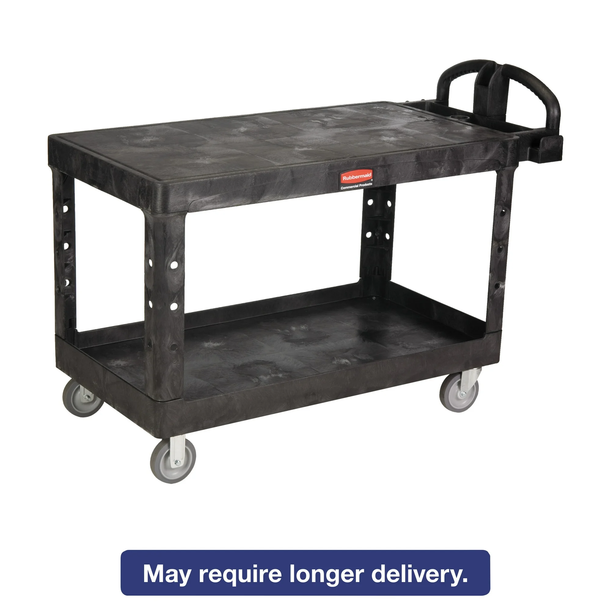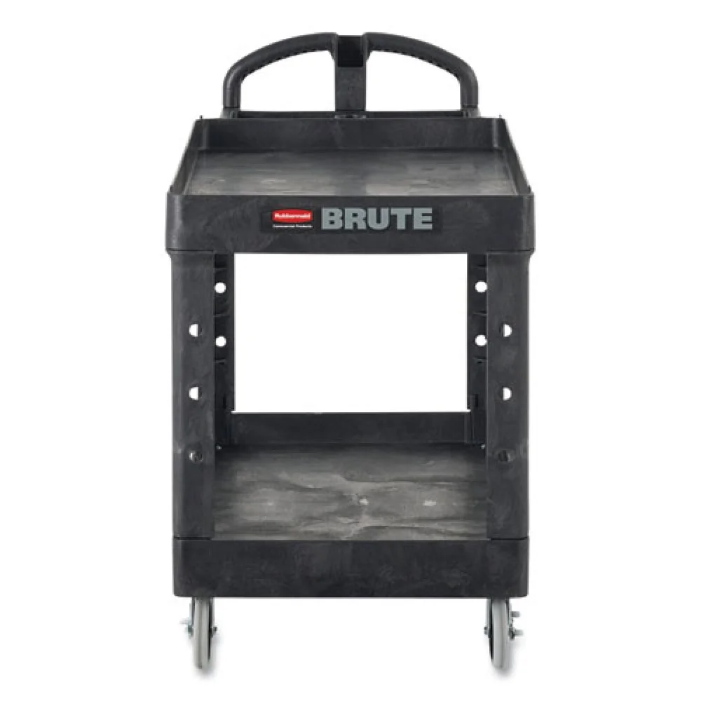 Rubbermaid Commercial Heavy-Duty 2-Shelf Utility Cart, TPR Casters, 25.25w x 54d x 36h, Black -RCP4545BLA