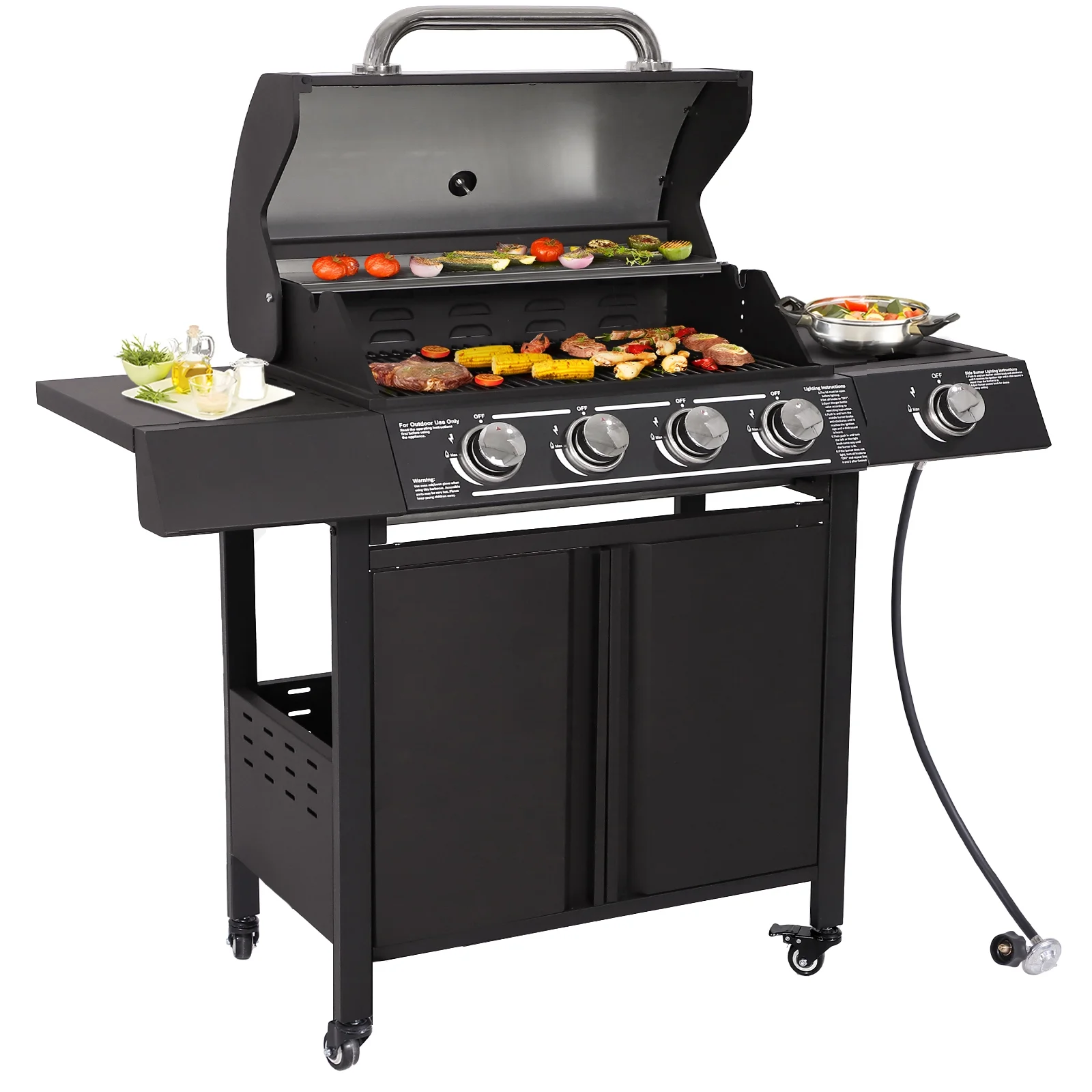 Magic Union 4-Burner Propane Gas Grill with Side Burner and Stainless Steel Grates 50,000 BTU Outdoor Cooking BBQ Grills Cart