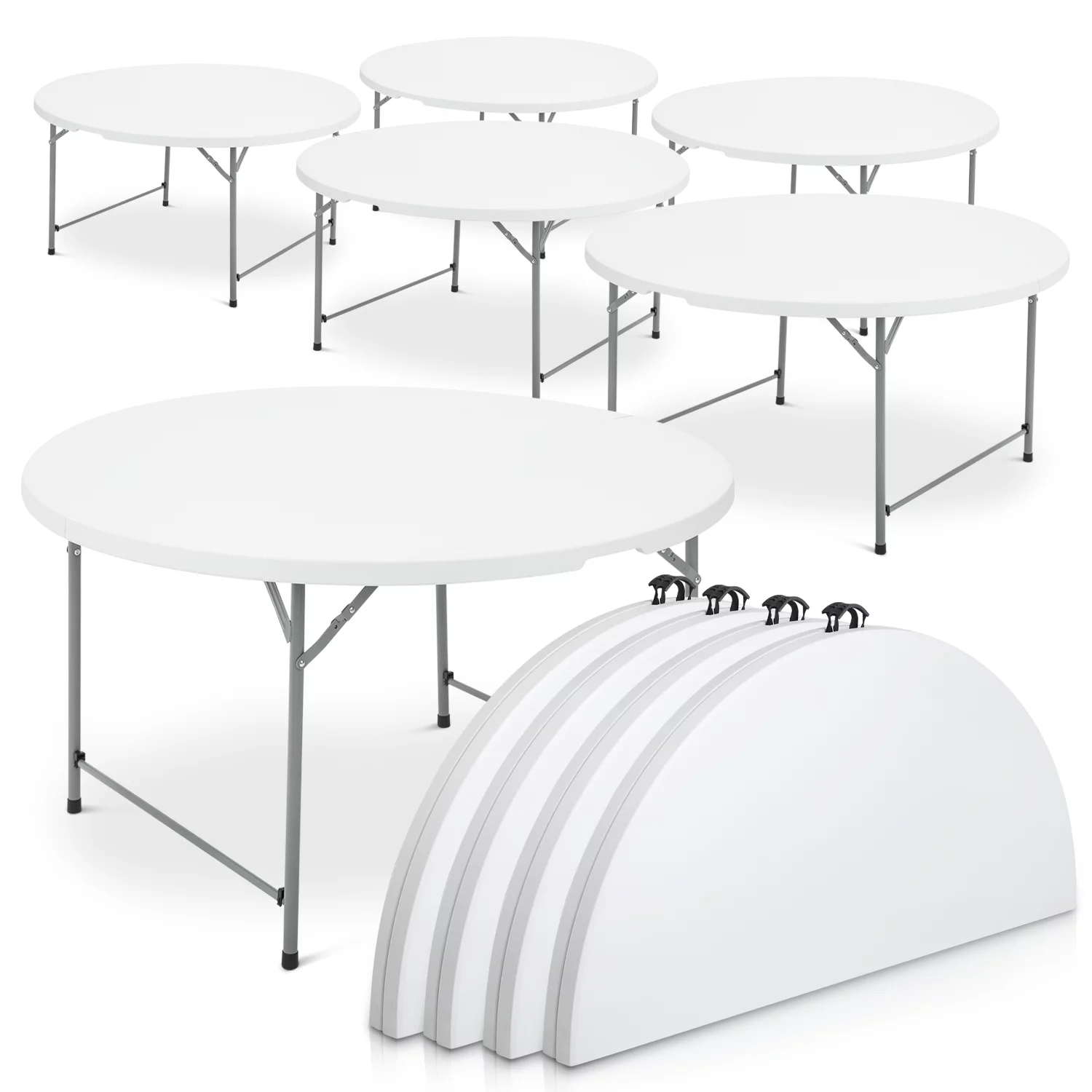 Magshion 10 Pieces Round Bi-Folding Commercial Table, 4.5 Feet Portable Plastic Dining Card Table for Kitchen Outdoor Party Wedding Event, White