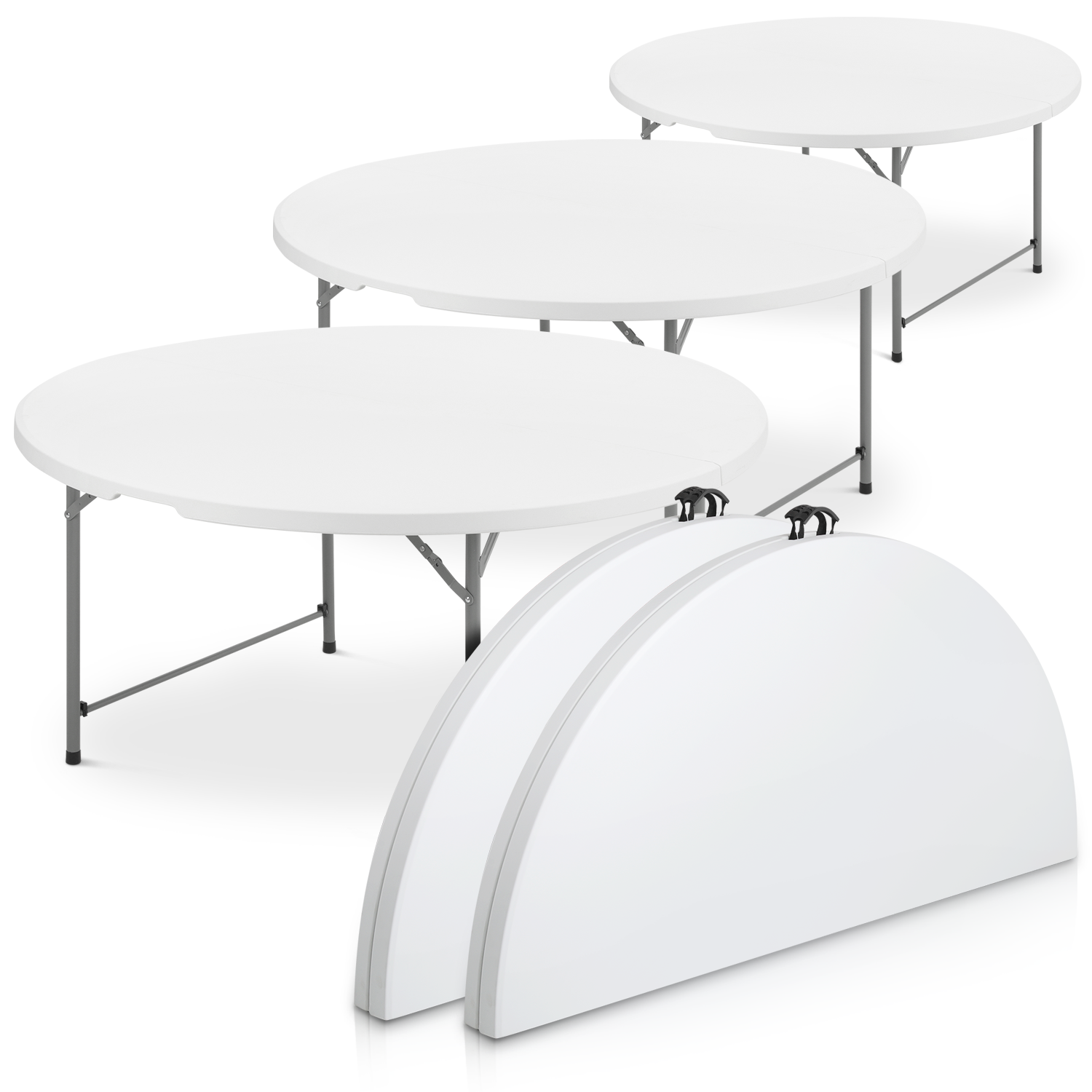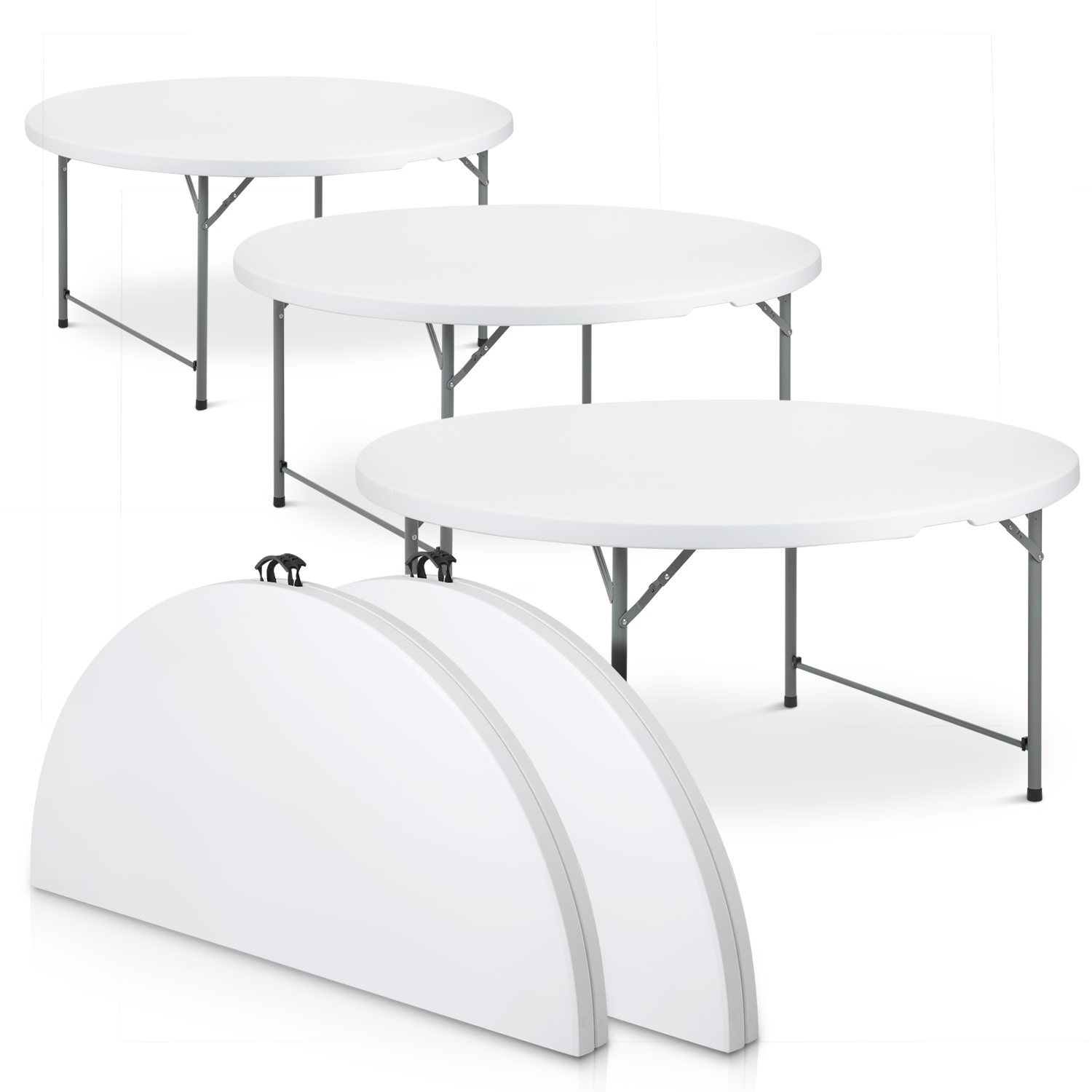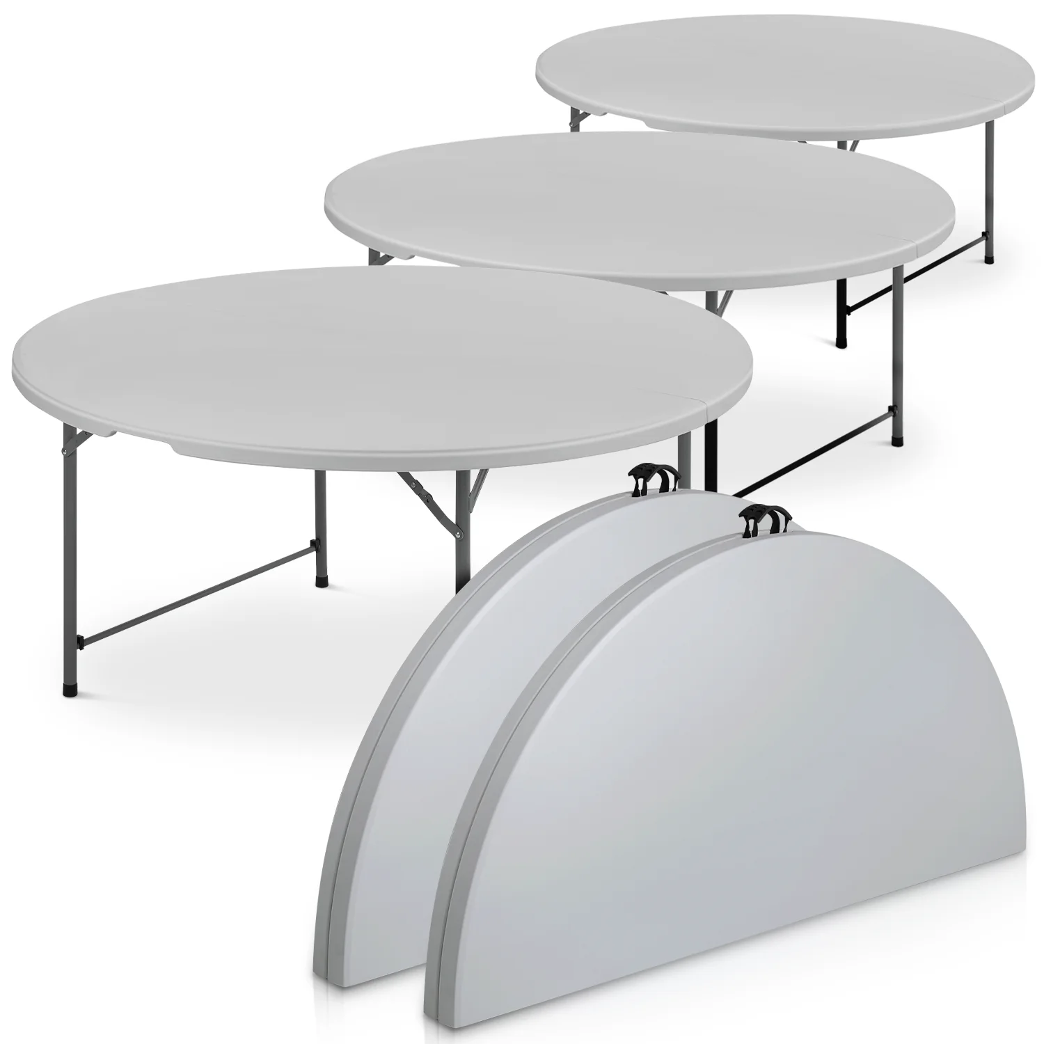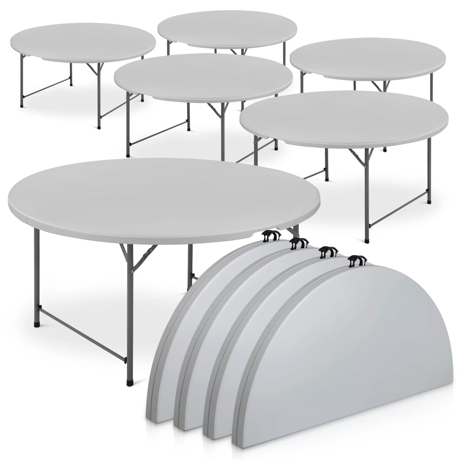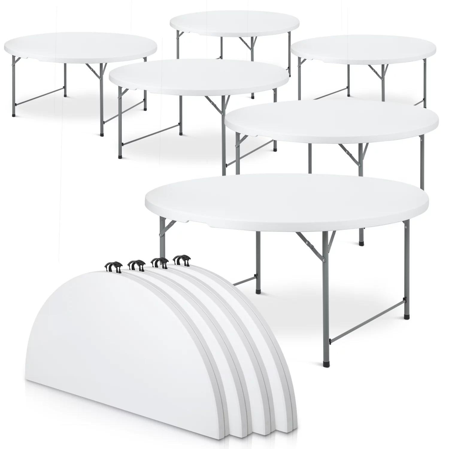 Magshion 5Ft Bi-Fold Plastic Folding Table Set of 5, Indoor Outdoor Round Foldable Commercial Card Table for Kitchen Party Wedding, White/Grey