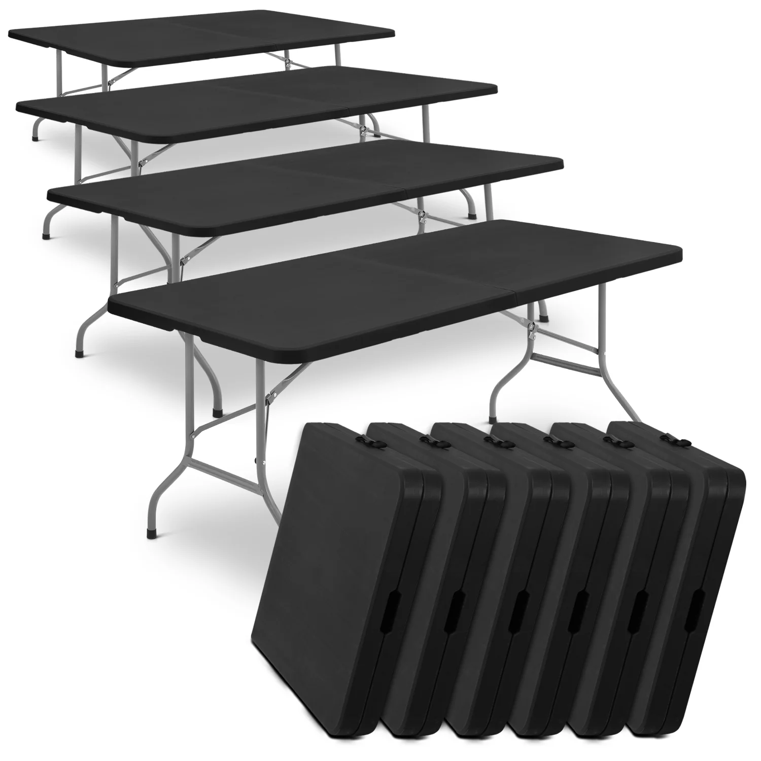 Magshion 6Ft Plastic Folding Card Table Set of 5, Indoor Outdoor Portable Rectangle Desk with Carry Handle and Lock for Camping Picnic, Black