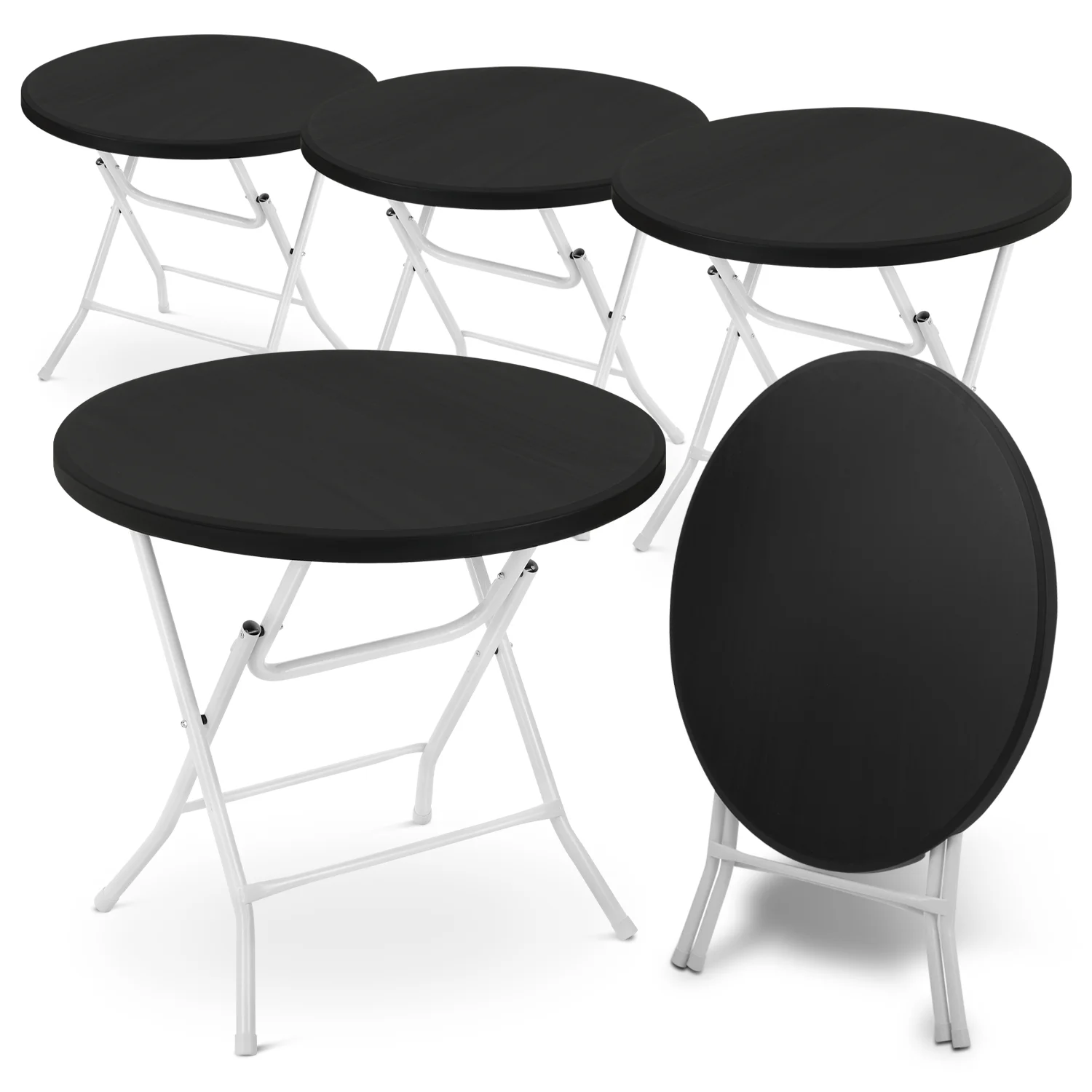 Magshion 5 Pieces 2.6Ft Round Folding Commercial Banquet Table, Portable Plastic Coffee Card Dining Table for Kitchen or Outdoor Party Wedding Event, Balck