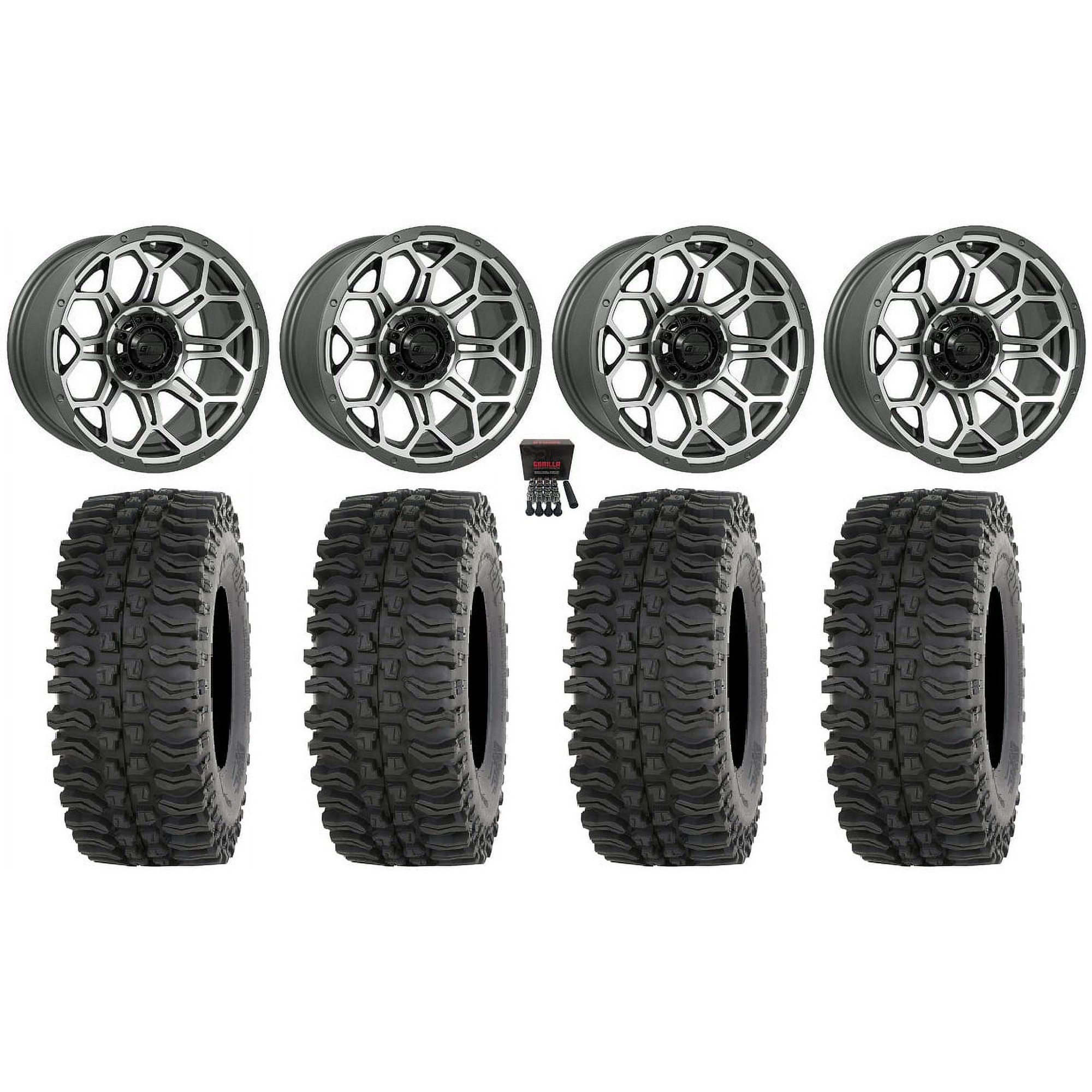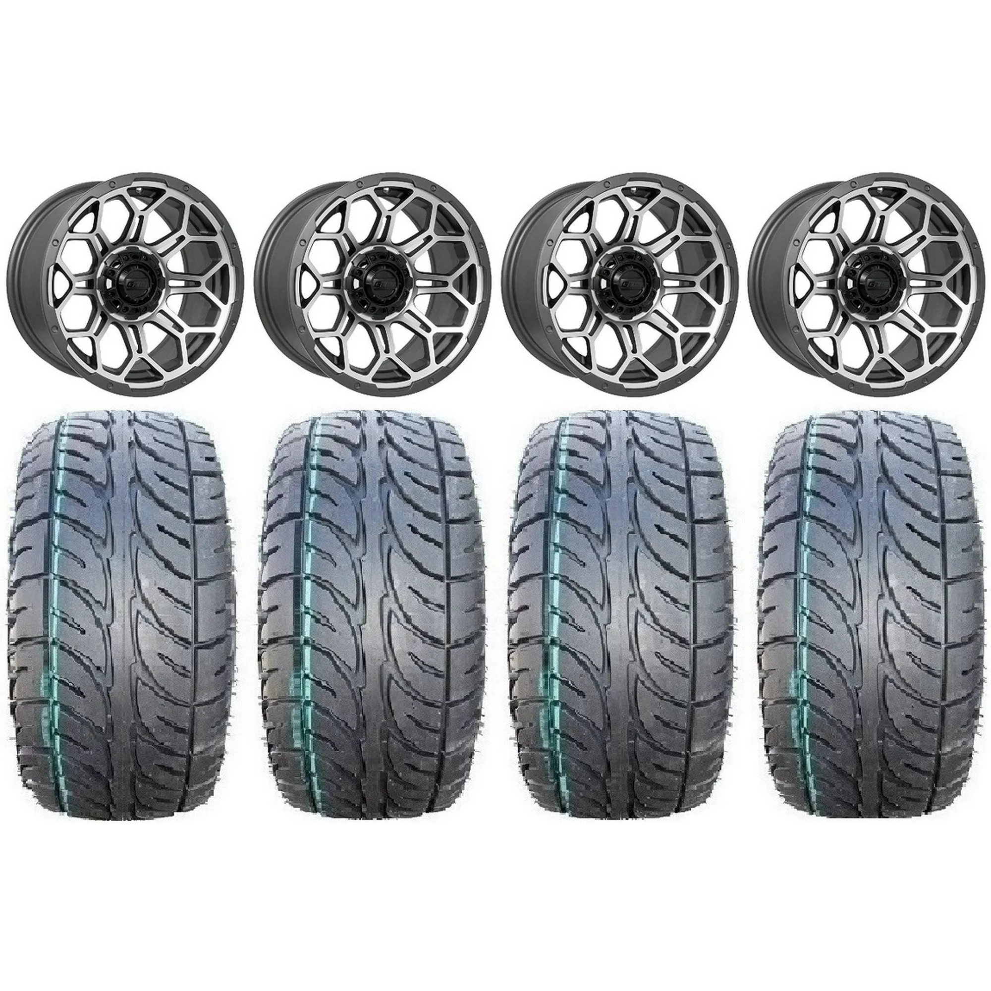 GTW Bravo 14" Gray Golf Cart Wheel 225/40-R14 (21") Fusion GTR Steel Belted Radial Cart Tire|Set