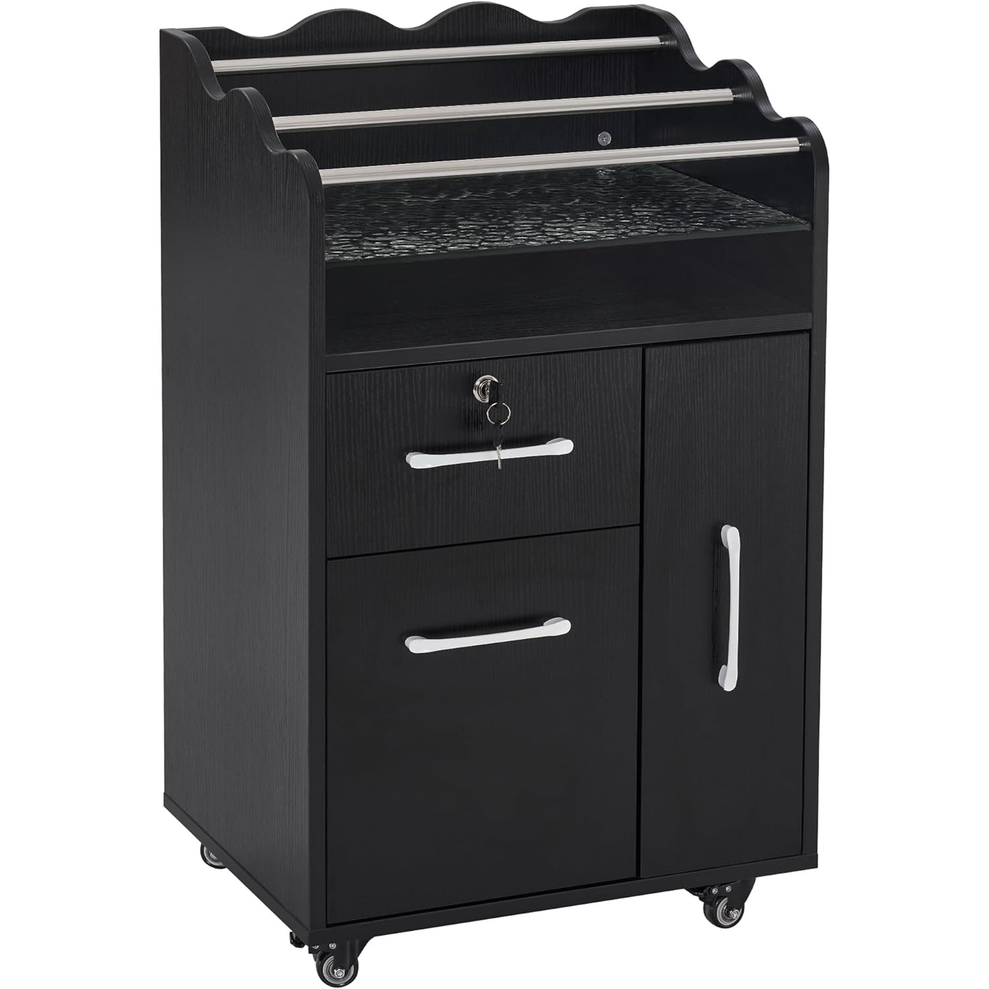 Salon Cart with Storage Drawer Cabinet Barber Trolley with Wheels Rolling Salon Cart for Hair Stylist Beauty Organizer 2045 (Black)