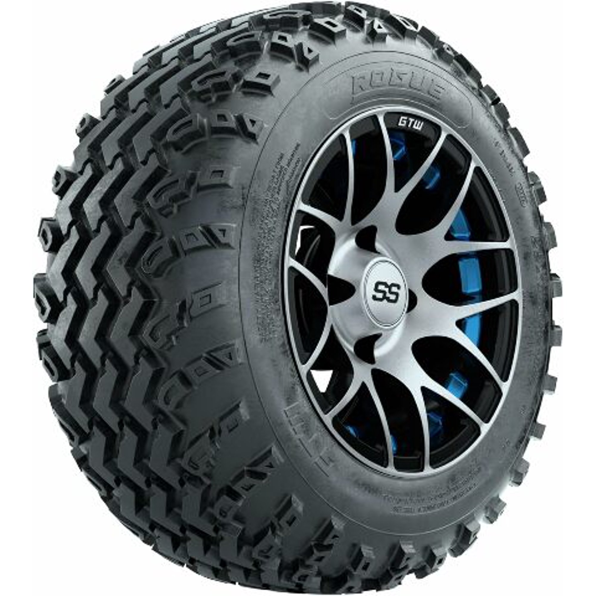 GTW Pursuit 12" Blue Golf Cart Wheel on 22x11-12 (22") Rogue All-Terrain Tire |Lifted Cart |Set