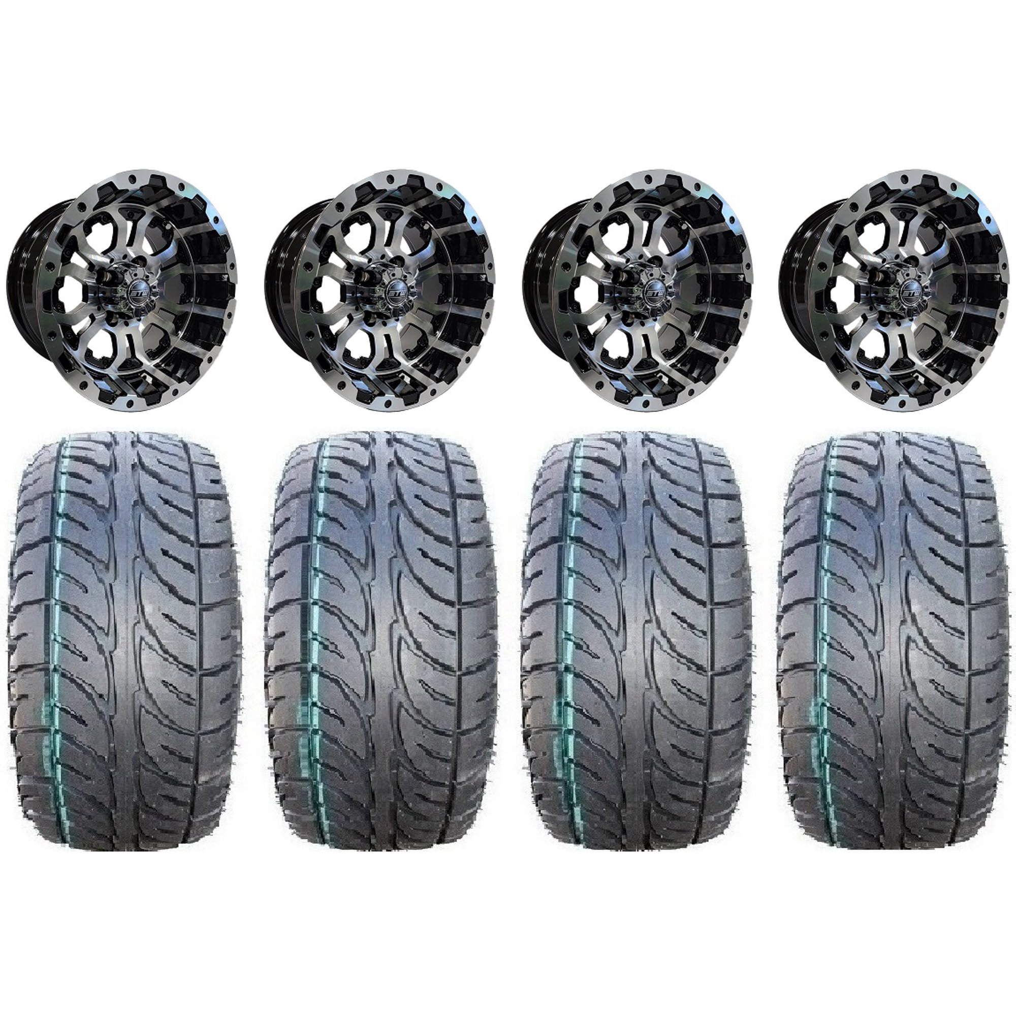 GTW Omega 12" Golf Cart Wheels Machined 23" Fusion ST Tires E-Z-GO & Club Car