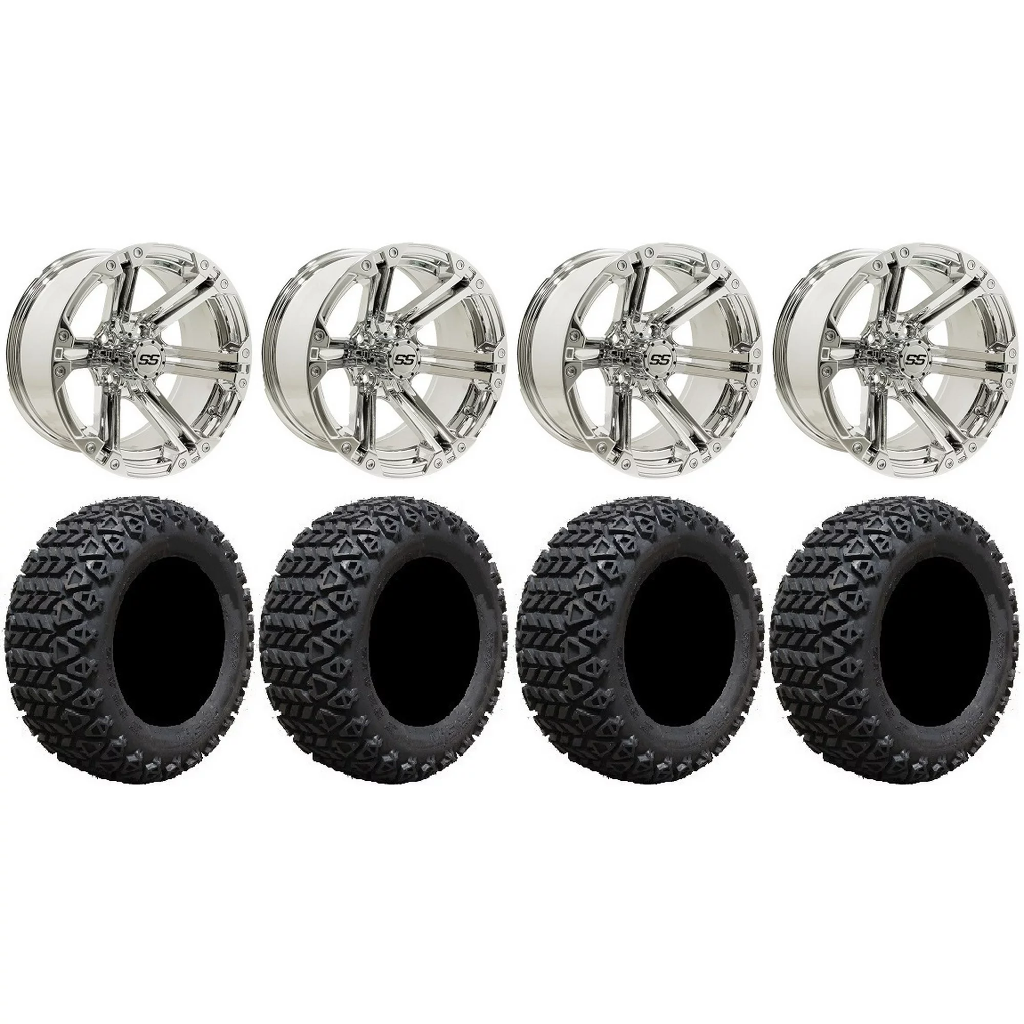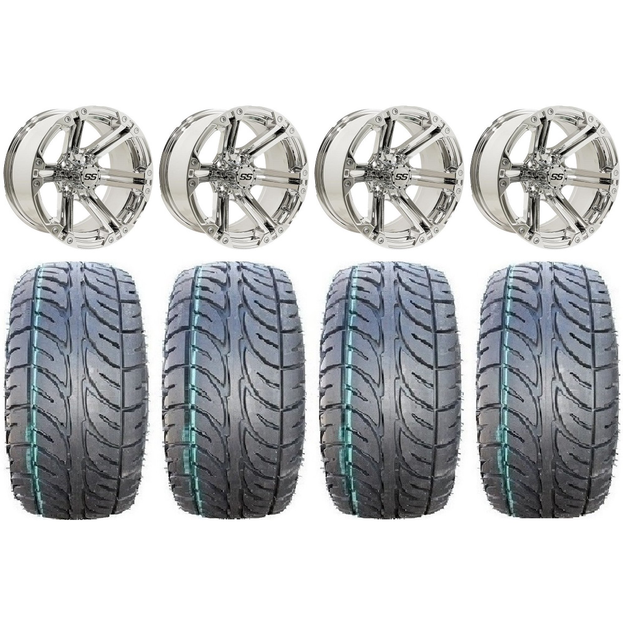 GTW Specter 14" Chrome Golf Cart Wheel 225/40-R14 (21") Fusion GTR Steel Belted Radial Cart Tire |Set