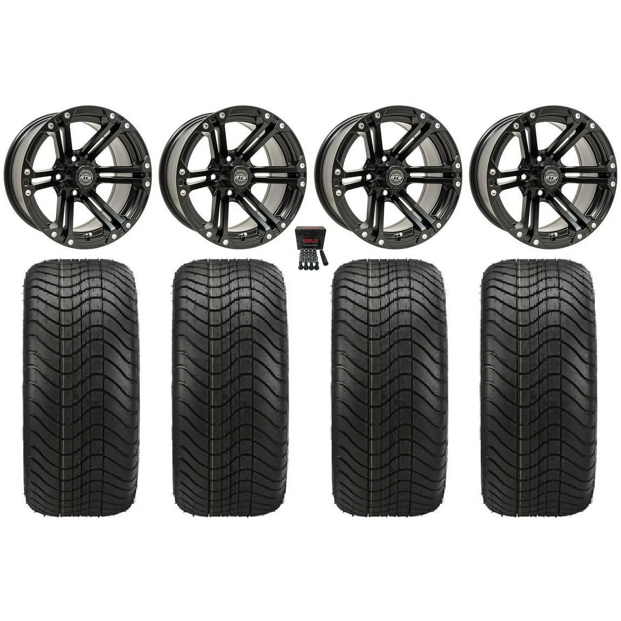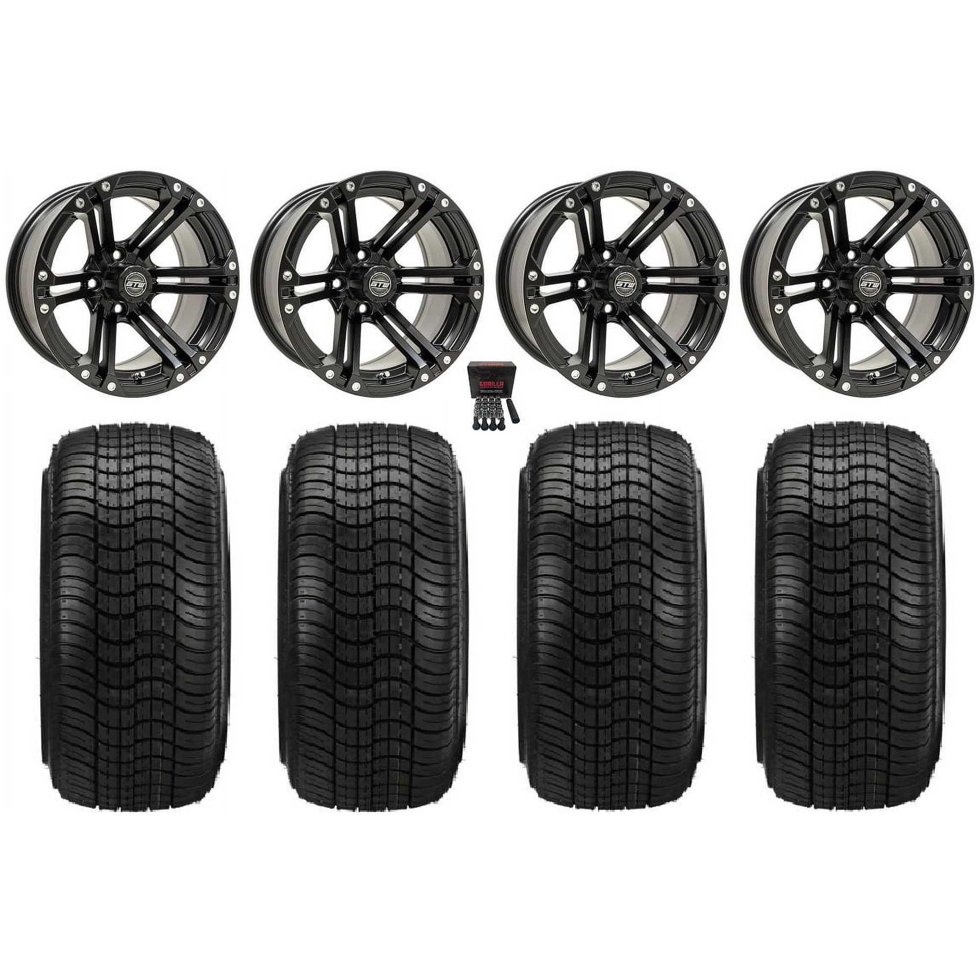 GTW Specter 14" Golf Cart Wheels Black 205x30 Fusion ST Tires E-Z-GO & Club Car