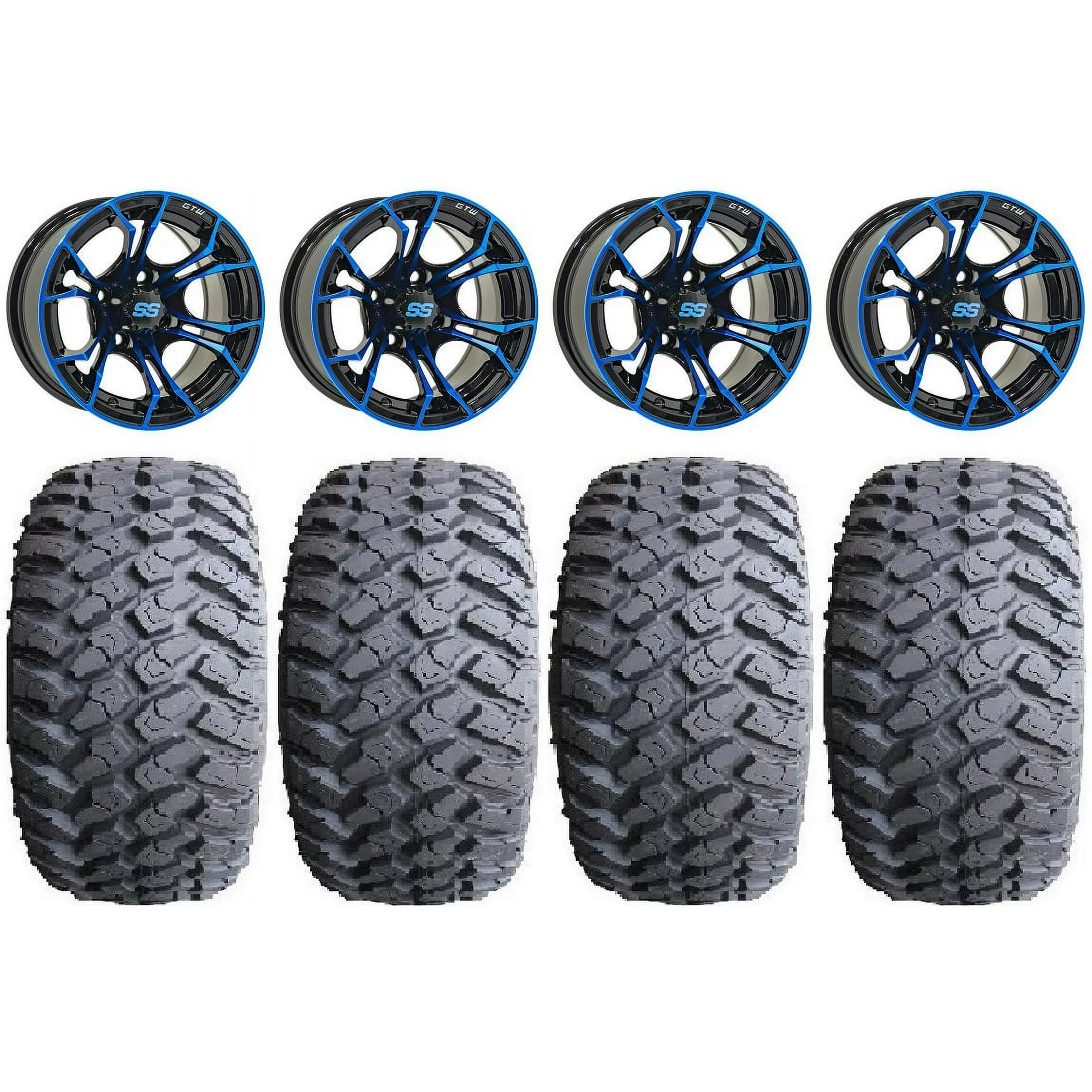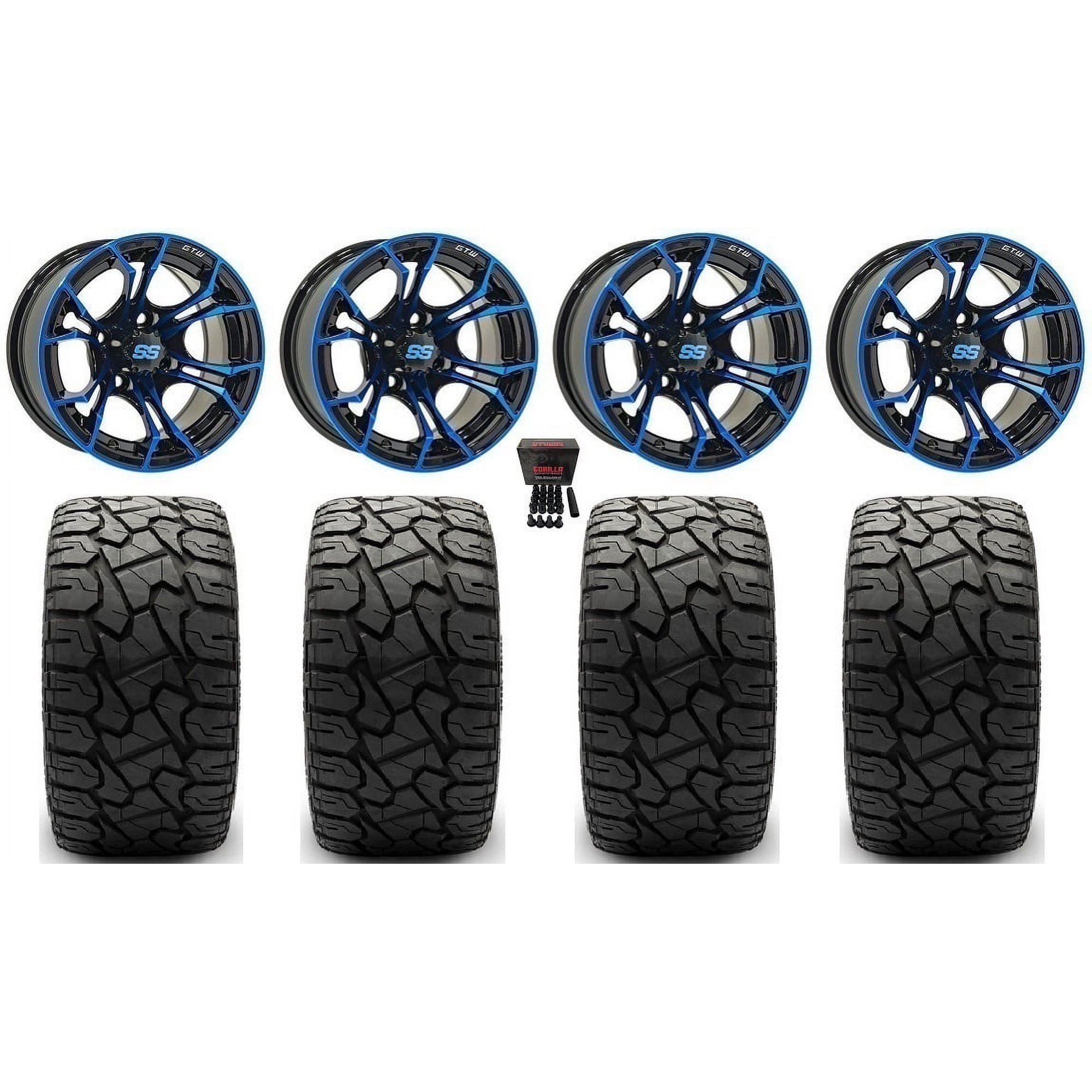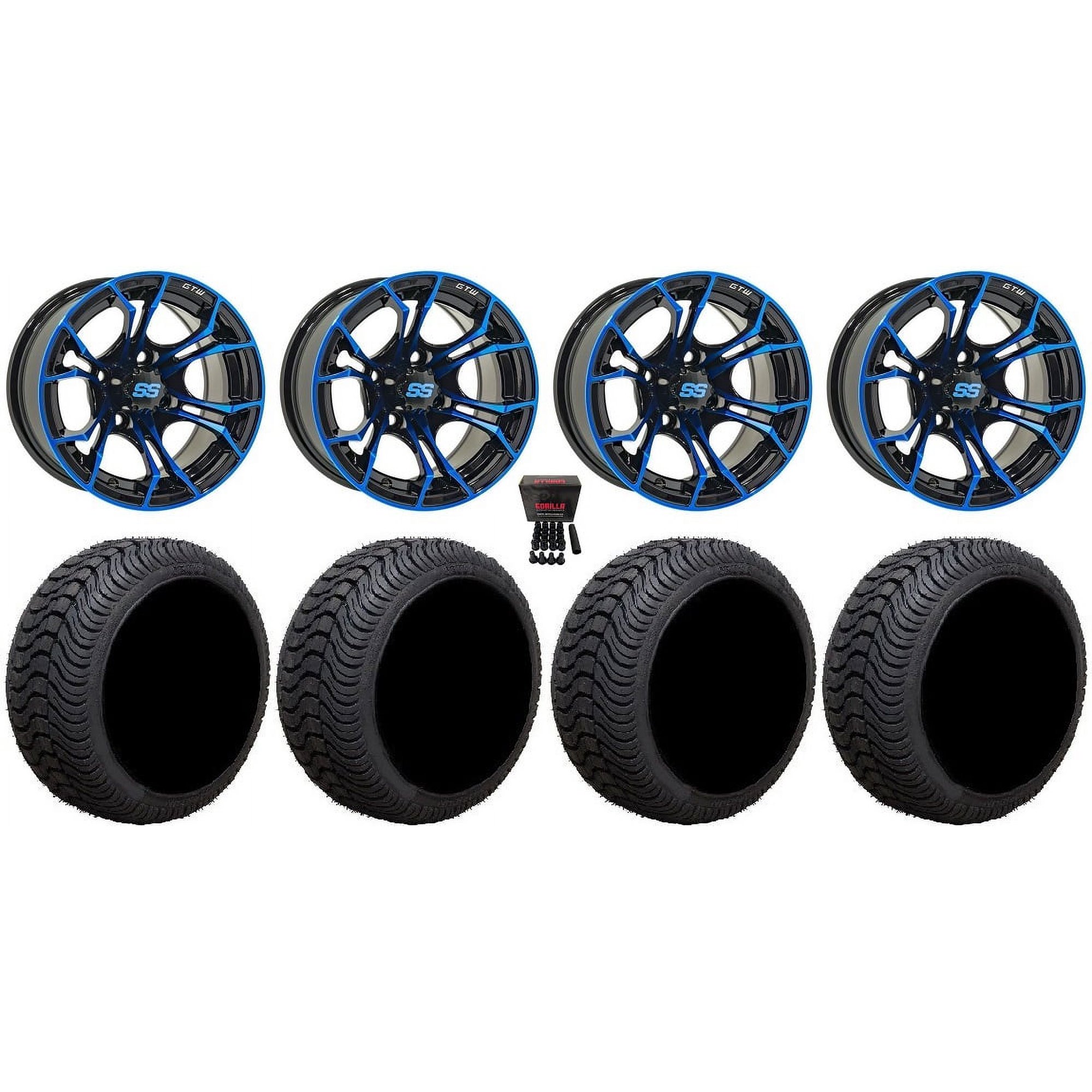 GTW Spyder 12" Golf Cart Wheels Blue 23" Hammer Tires Yamaha