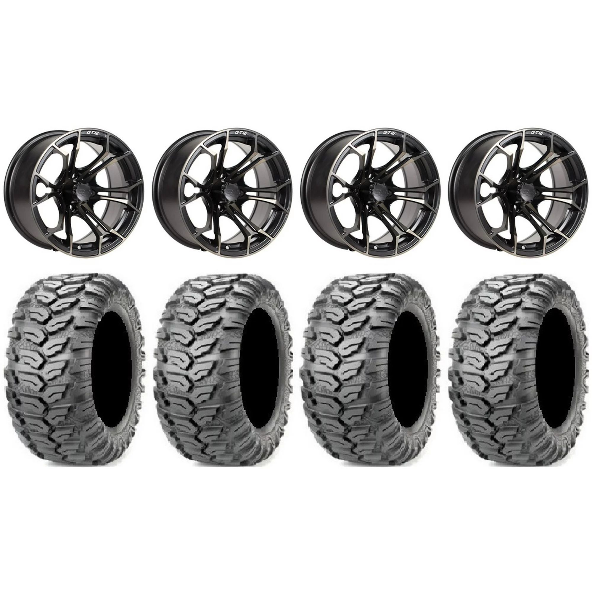 GTW Spyder 12" Golf Cart Wheels Blue 215x50 X Comp X/T Tires Yamaha
