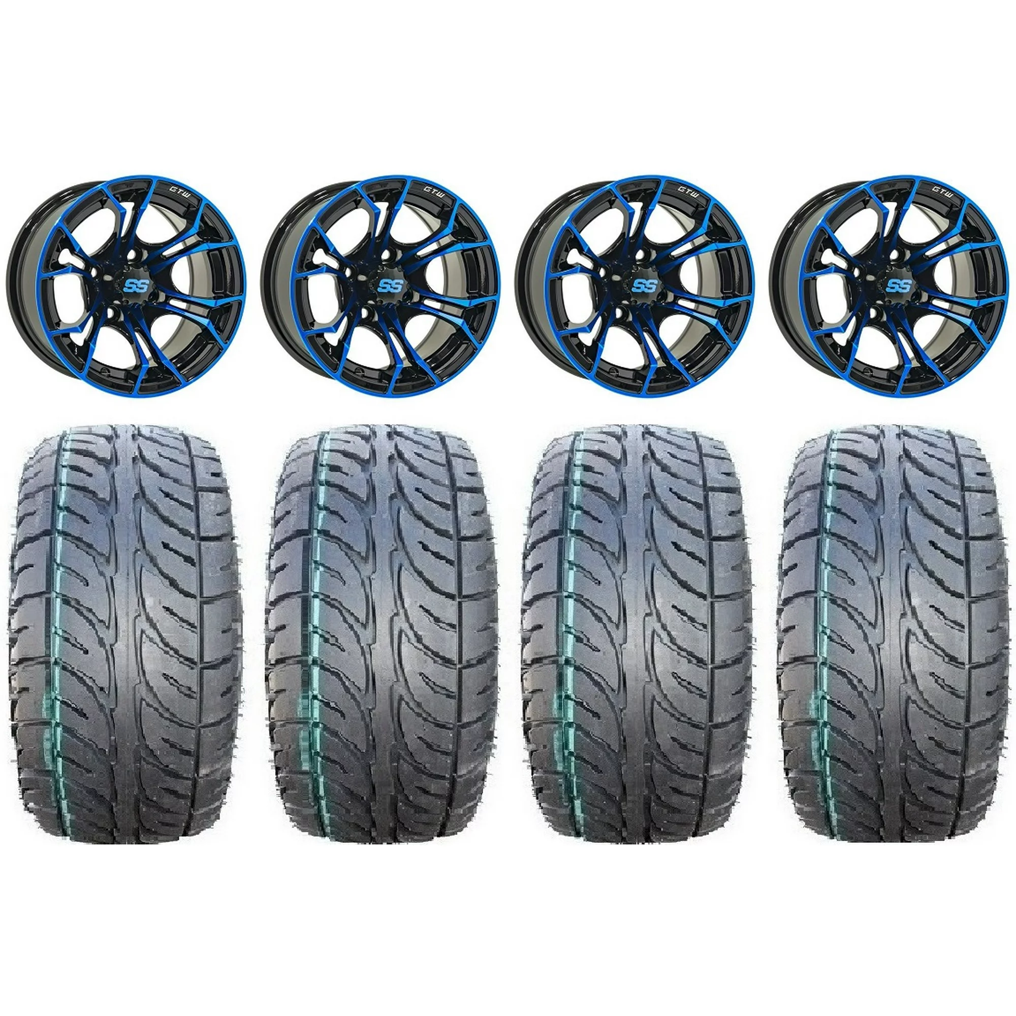 GTW Spyder 12" Golf Cart Wheels Blue Elite 215x35-12 Tires E-Z-GO & Club Car