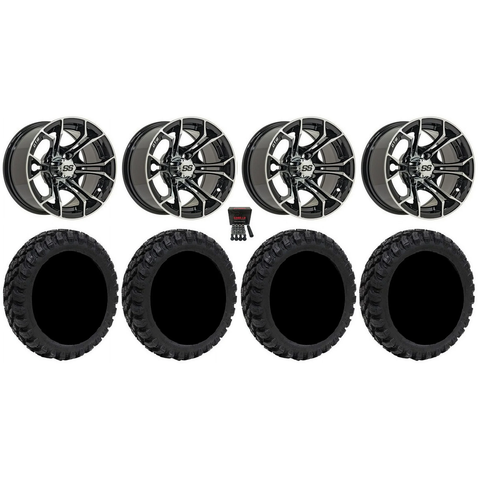 GTW Spyder 12" Golf Cart Wheels Machined 23" Fusion ST Tires Yamaha