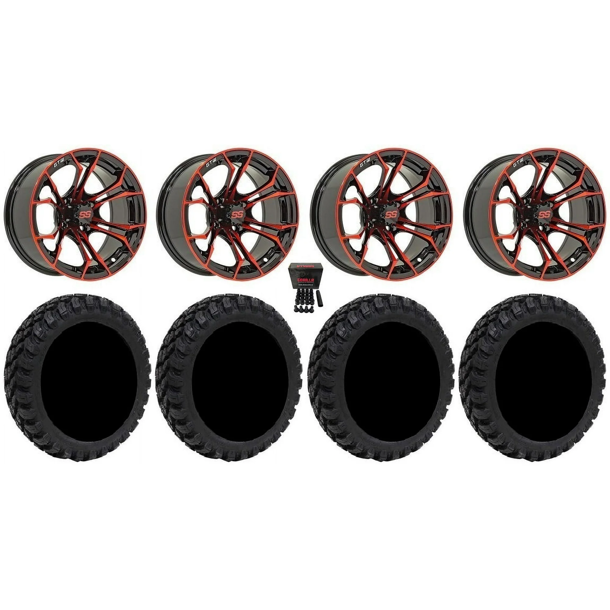 GTW Spyder 12" Golf Cart Wheels Red 205x35 X Comp X/T Tires E-Z-GO & Club Car