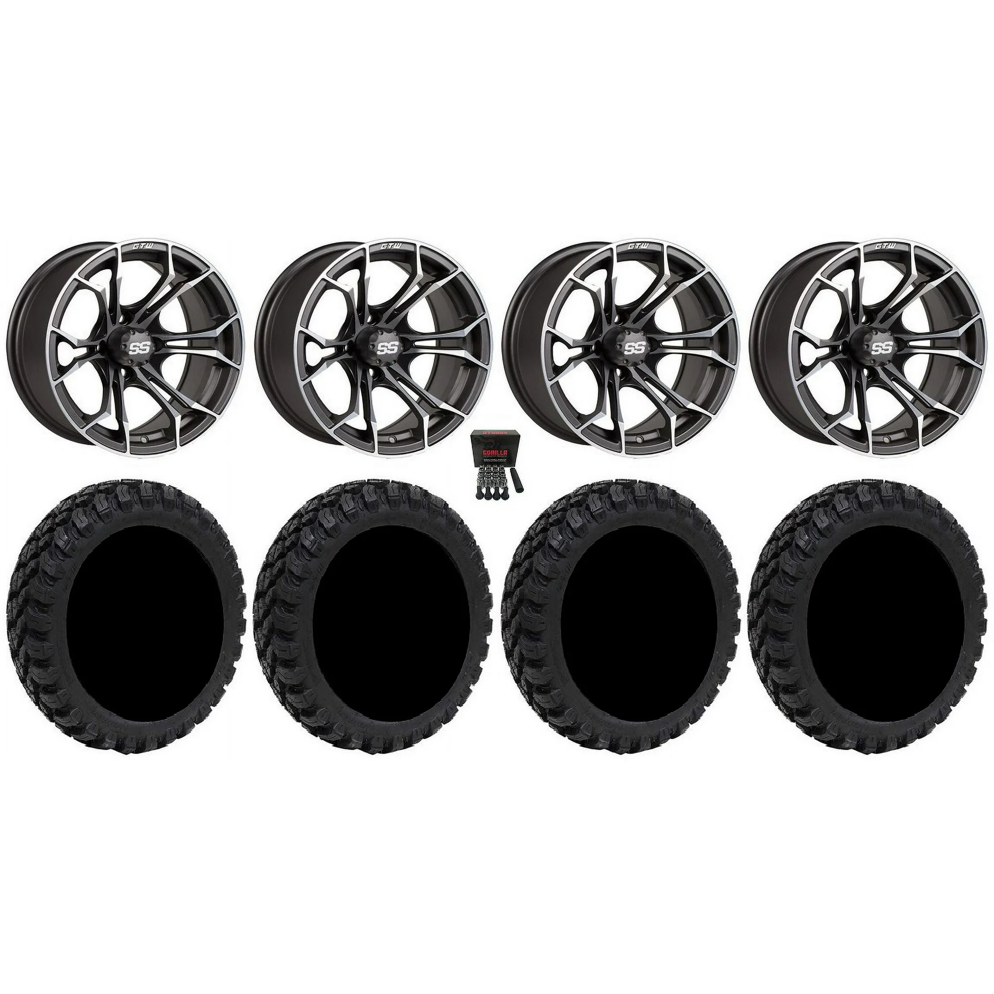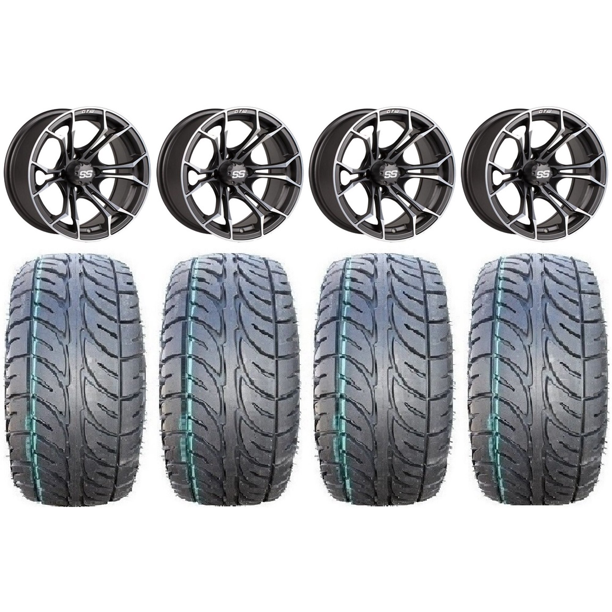 GTW Spyder 14" Golf Cart Wheels Mh 205x30 Fusion ST Tires E-Z-GO & Club Car