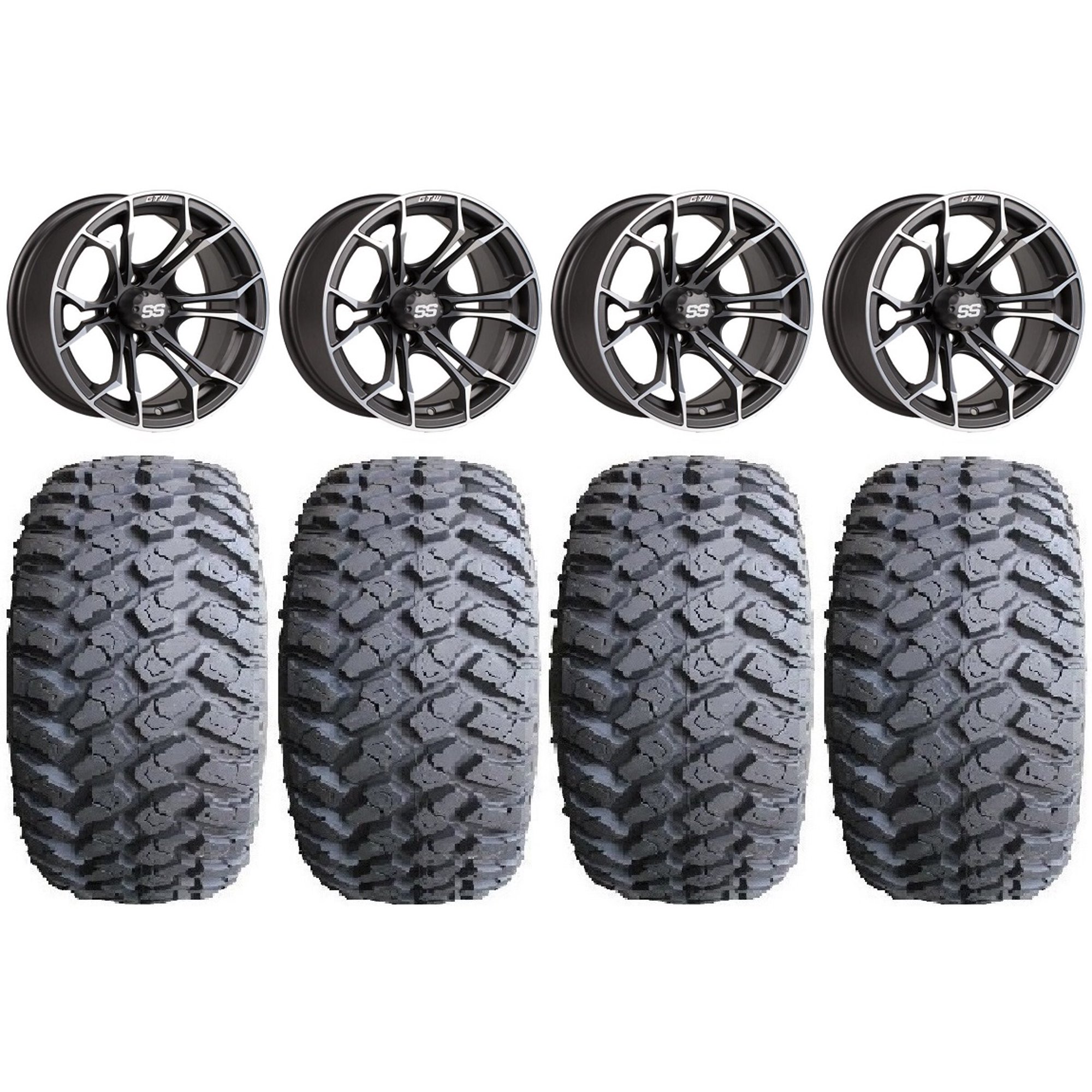 GTW Spyder 14" Golf Cart Wheels Mh 205x30 Fusion ST Tires Yamaha