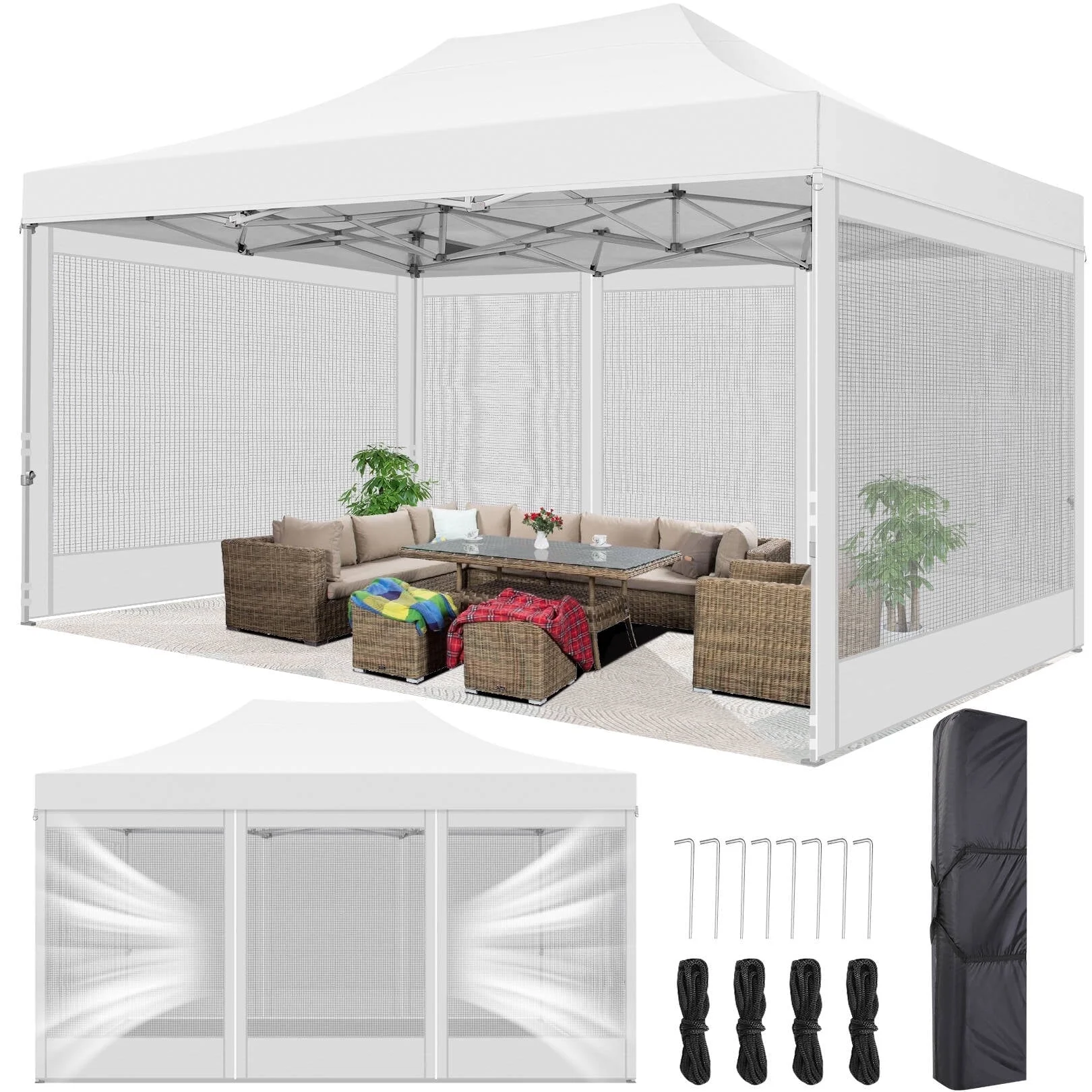 SANOPY 10' x 15' Pop Up Canopy with Sidewalls Waterproof, Easy to Set up Heavy Duty Canopy with Mosquito Netting Outdoor Mesh Screen Canopy Tent for Parties Wedding Party with Carry Bag