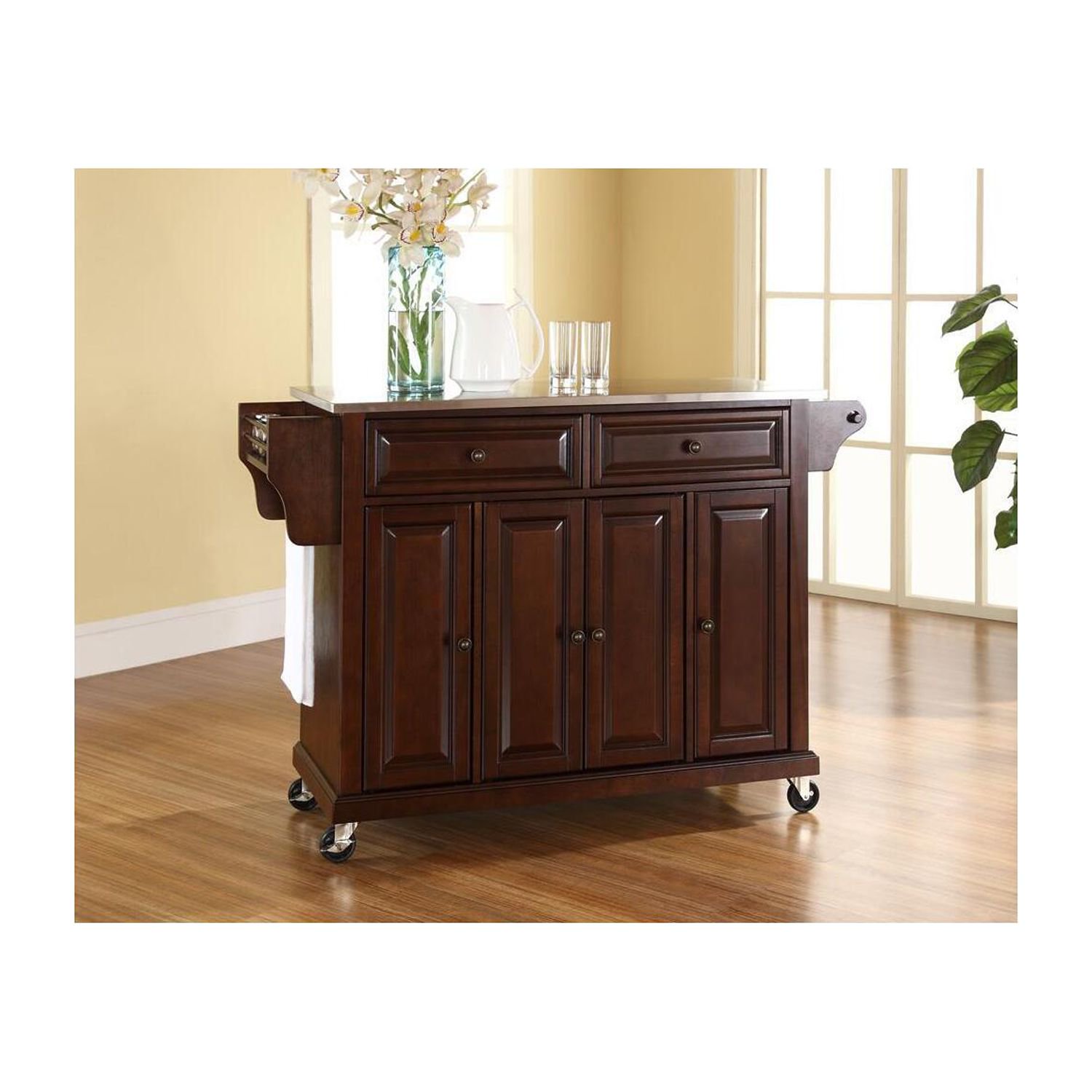 Maykoosh Timeless Tradition Stainless Steel Top Full Size Kitchen Island/Cart Mahogany/Stainless Steel