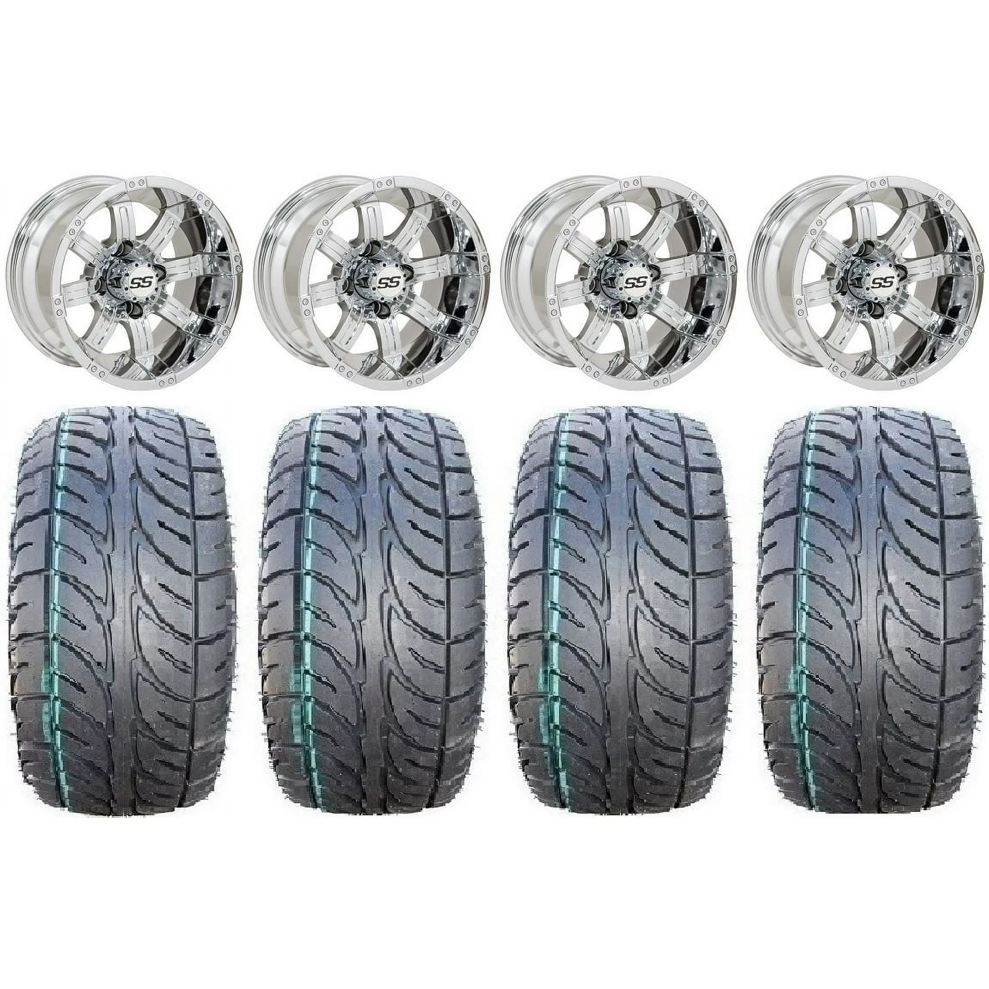 GTW Tempest 14" Chrome Golf Cart Wheel 225/40-R14 (21") Fusion GTR Steel Belted Radial Cart Tire |Set