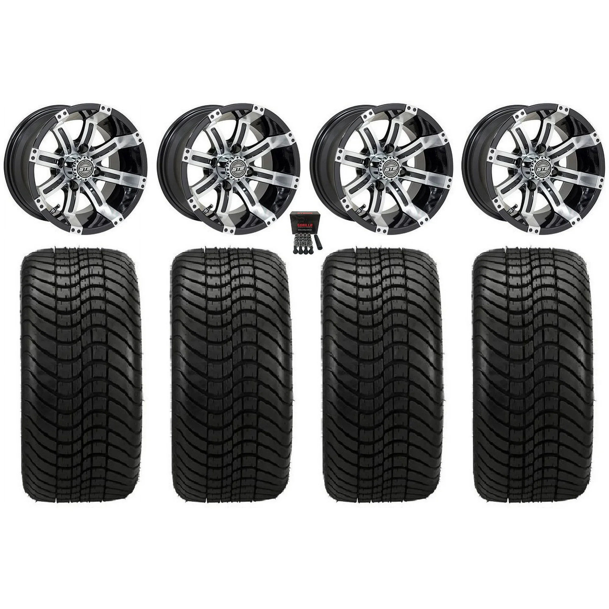 GTW Tempest 12" Golf Wheels Machined Elite 215x40-12 Tires E-Z-GO & Club Car