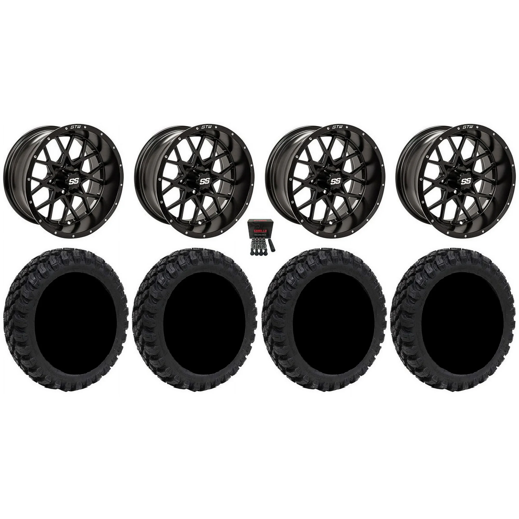 GTW Vortex 2 14" Golf Cart Wheels Black Elite 205x30-14 Tires E-Z-GO & Club Car