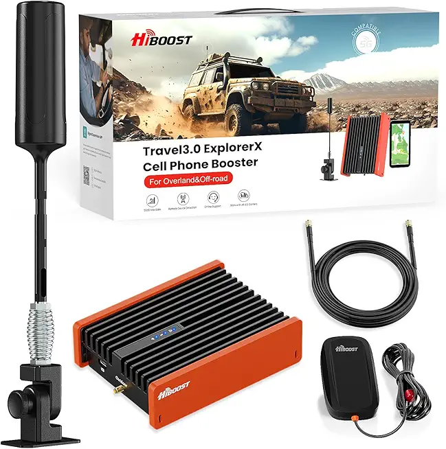 Cell Phone Signal Booster for Overland and Off-road Vehicle | Boosts 5G & 4G LTE for All Carriers - Verizon, AT&T, T-Mobile & More | Folding Antenna Mount | Ultra-stable Booster | FCC Approved