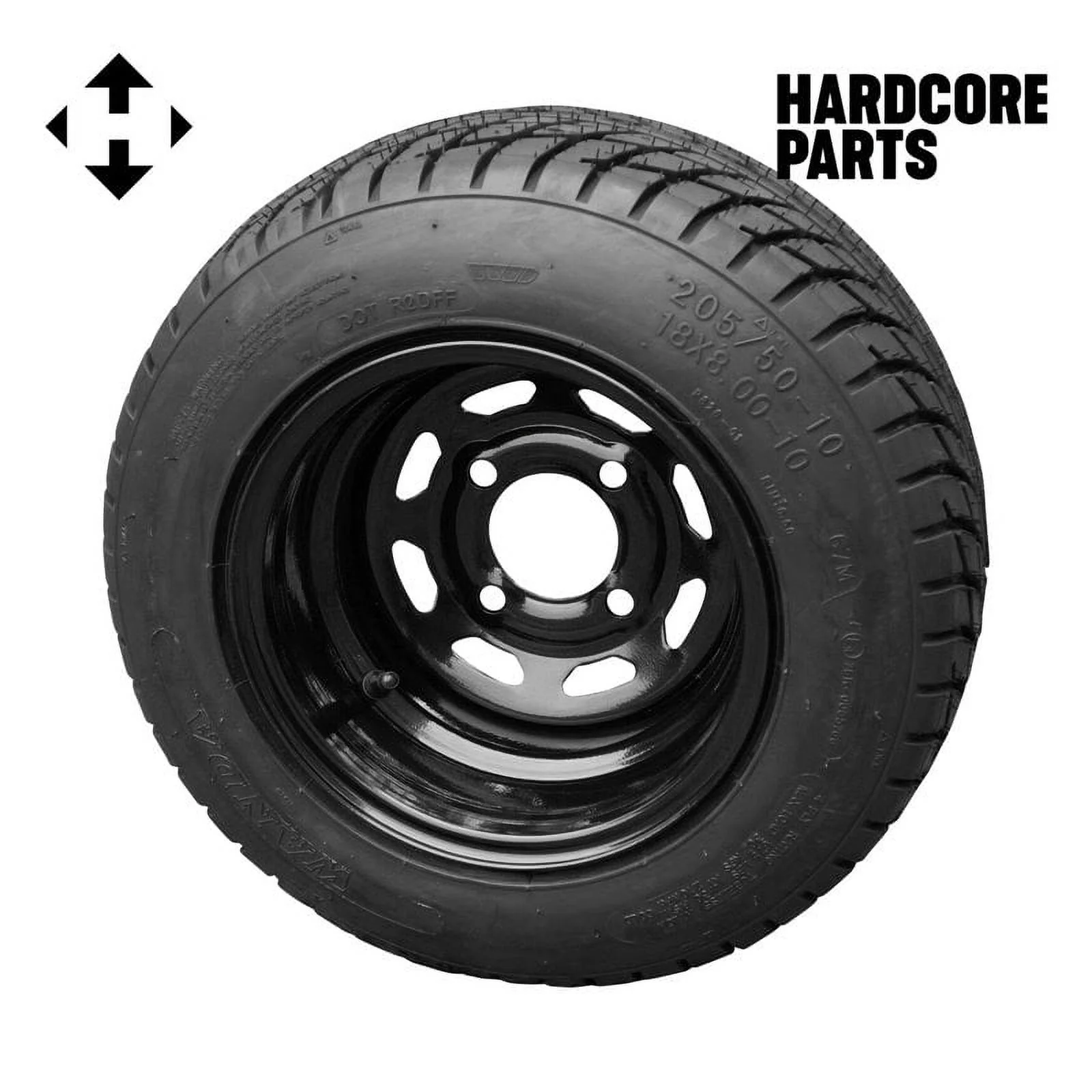 Hardcore Parts 10" Black Steel Golf Cart Wheels and 205/50-10 (18"x8"-10") DOT rated Low Profile tires - Set of 4