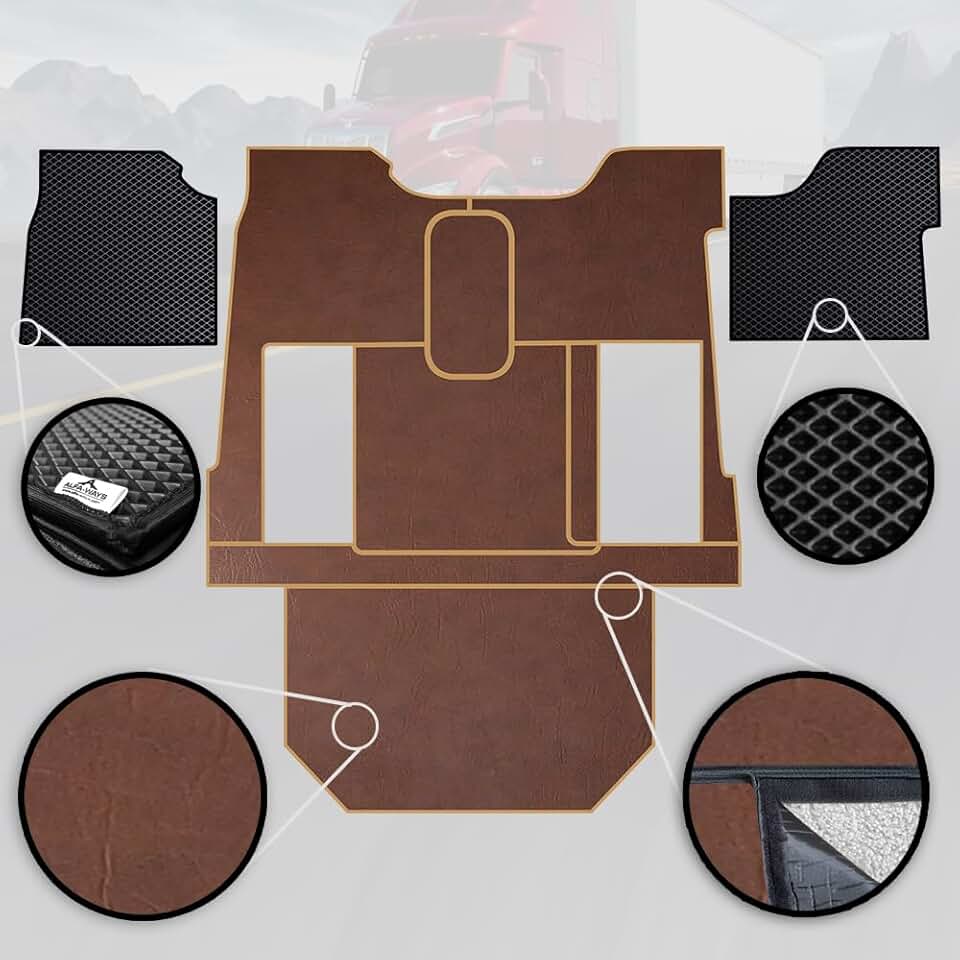 Floor Mats fits Peterbilt 579 - All Weather Floor Mats Brown - Car Mats All Weather - Floor Liners for Trucks - Floor Liners in Eco Leather and Black Protective Rubber Mats