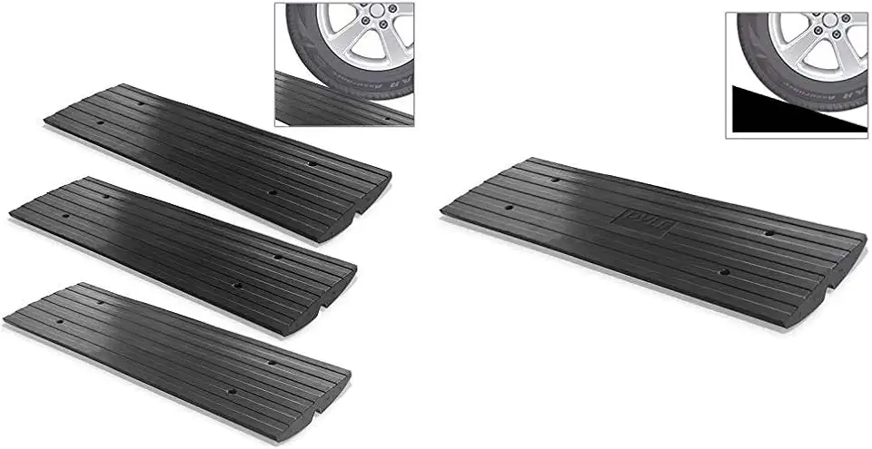 Pyle Car Driveway Adjustable Curb Ramps - 3 Pack Heavy Duty Rubber Threshold Ramp Kit Set w/Car Driveway Curb Ramp - Heavy Duty Rubber Threshold Ramp - Also for Loading Dock, Garage, Sidewalk