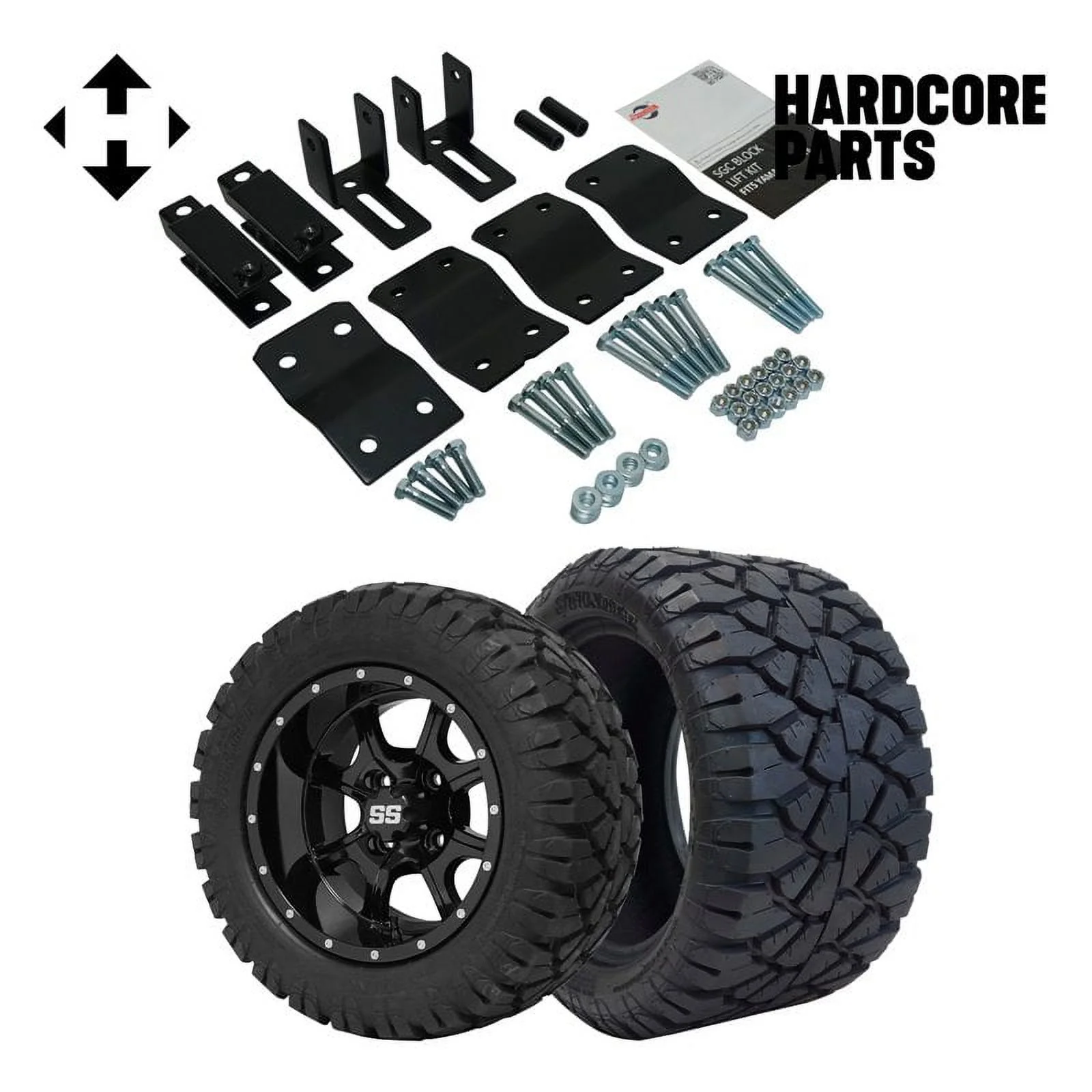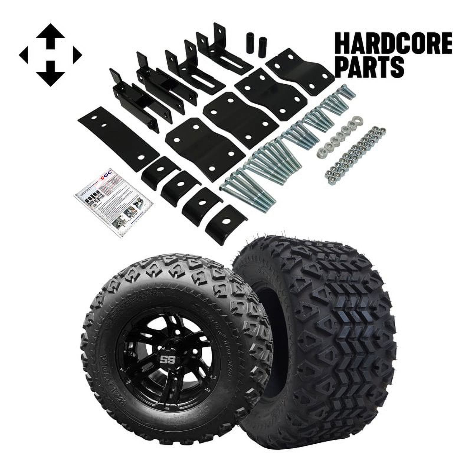 Hardcore Parts 4" Block Lift Kit for YAMAHA G14/G16/G19 Golf Cart with 12" Black 'DARKSIDE' Wheels and 20"x10"-12" STINGER On-Road/Off-Road DOT rated All-Terrain tires