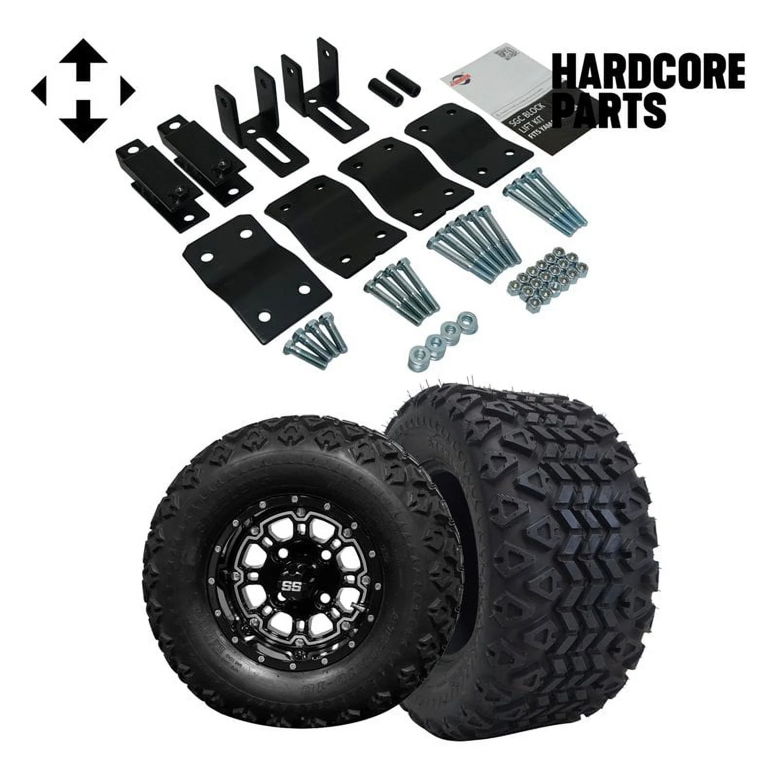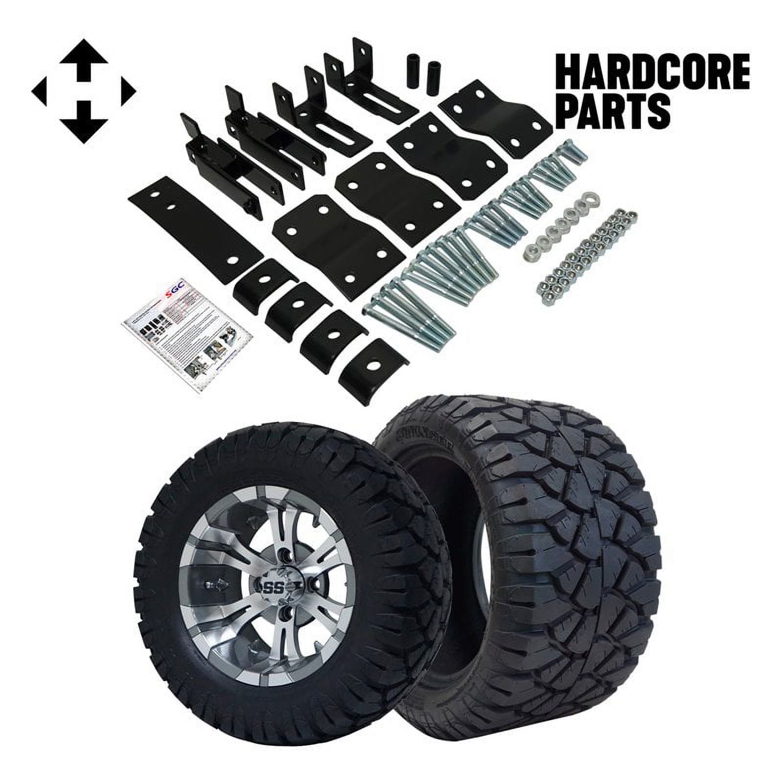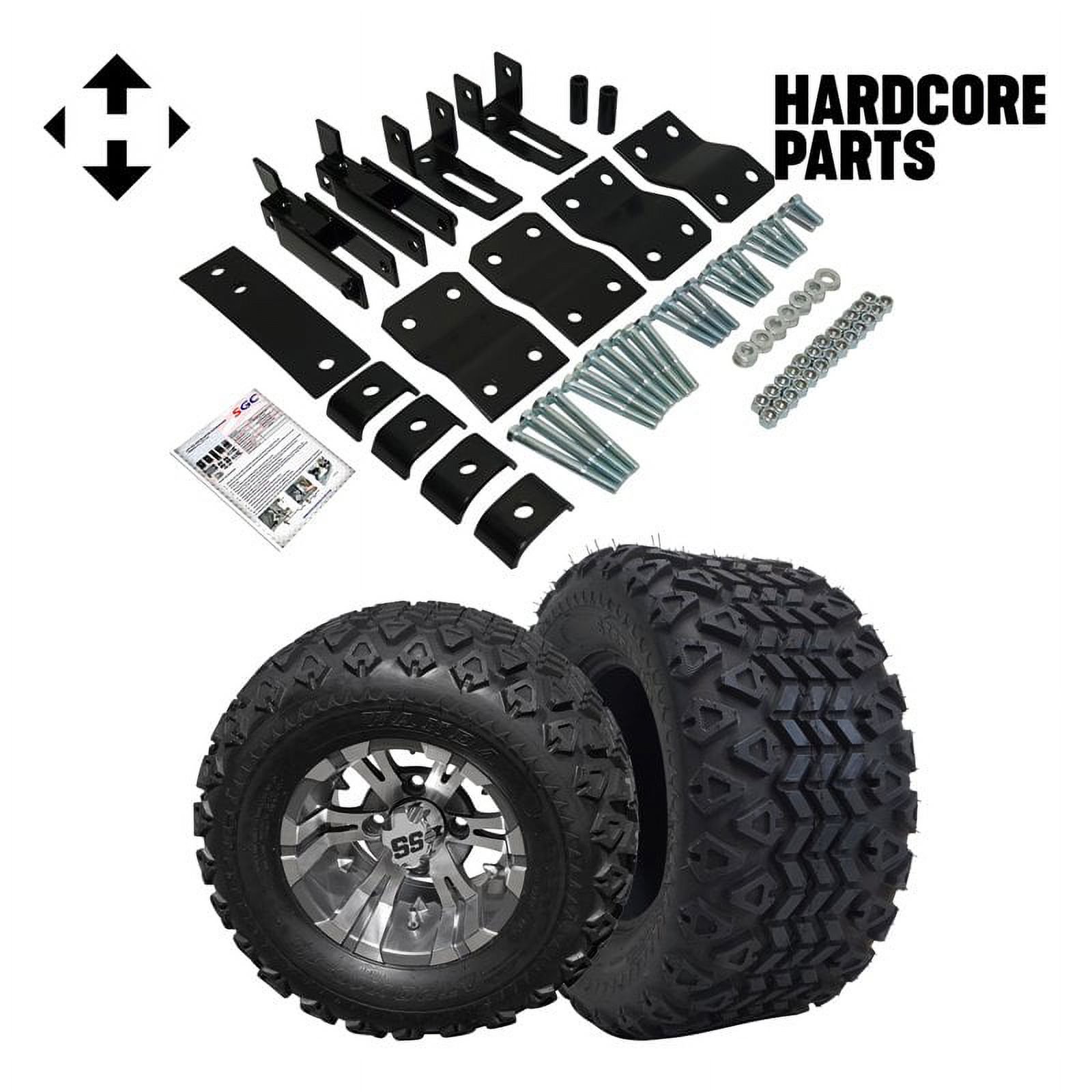 Hardcore Parts 4" Block Lift Kit for YAMAHA G14/G16/G19 Golf Cart with 12" Machined/Gunmetal 'VAMPIRE' Wheels & 20"x10"-12" STINGER On-Road/Off-Road DOT rated All-Terrain tires