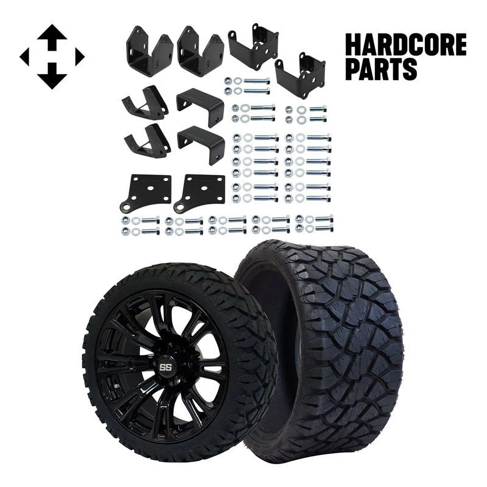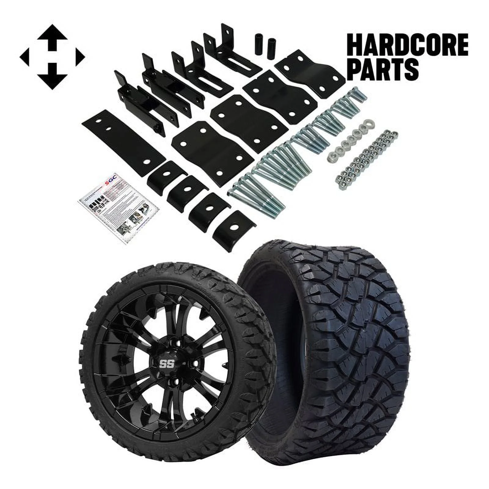 Hardcore Parts 4" Block Lift Kit for YAMAHA G14/G16/G19 Golf Cart with 14" Black 'VAMPIRE' Wheels and 20"x8.5"-14" STINGER On-Road/Off-Road DOT rated All-Terrain tires