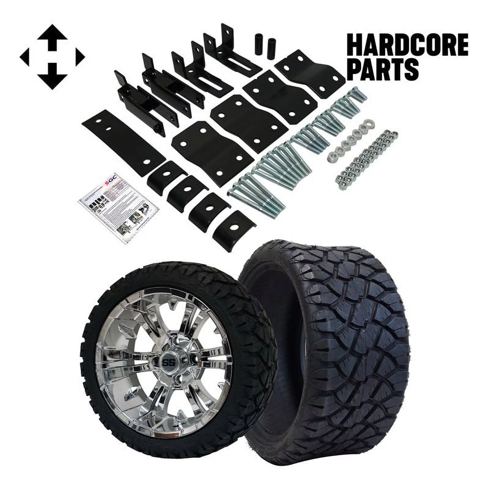 Hardcore Parts 4" Block Lift Kit for YAMAHA G14/G16/G19 Golf Cart with 14" Chrome 'Vampire' Wheels and 20"x8.5"-14 STINGER On-Road/Off-Road DOT rated All-Terrain tires