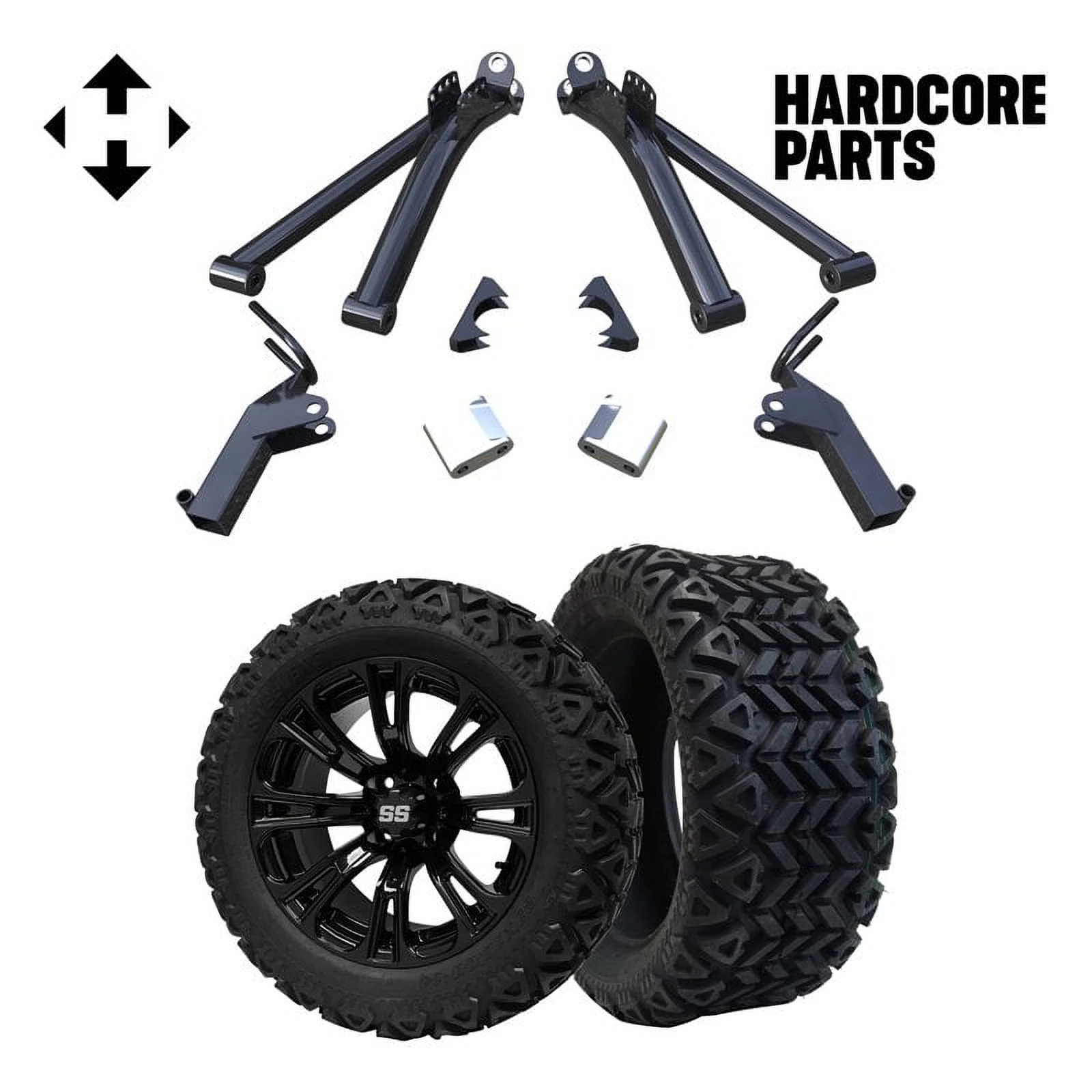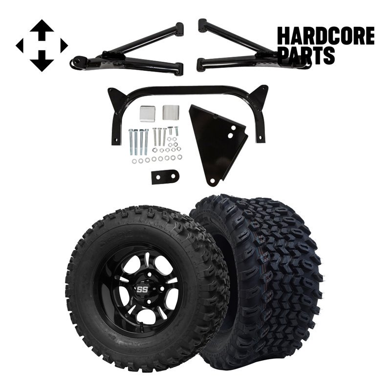 Hardcore Parts 6" A-Arm Lift Kit for Yamaha G2/G9 Golf Cart with 14" Black 'Voodoo' Wheels and 23"x10"-14" DOT rated All-Terrain tires