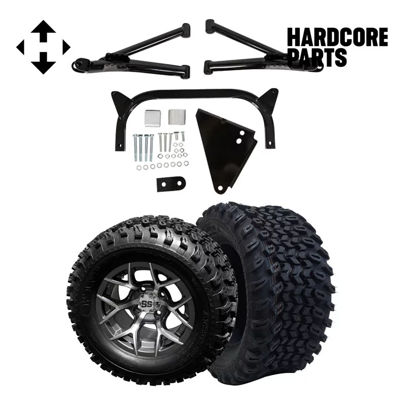 Hardcore Parts 6" A-Arm Lift Kit for Yamaha G8-G14/G16/G19/G20 Golf Cart with 12" Machined/Gunmetal 'Rally' Wheels and 23"x10.5"-12" All-Terrain tires