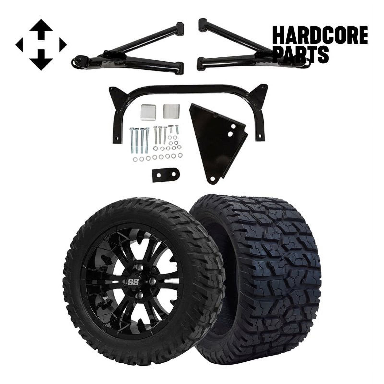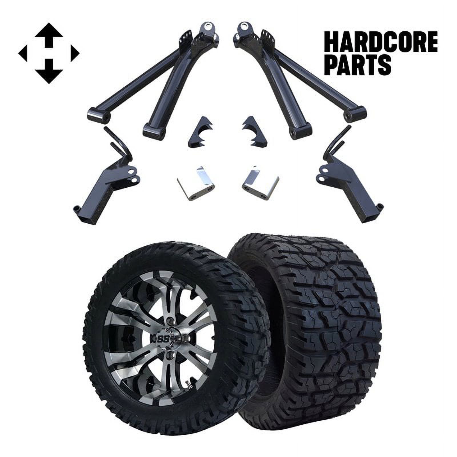 Hardcore Parts 6" A-Arm Lift Kit for Yamaha G8-G14/G16/G19/G20 Golf Cart with 14" Black 'Voodoo' Wheels and 23"x10"-14" DOT rated All-Terrain tires