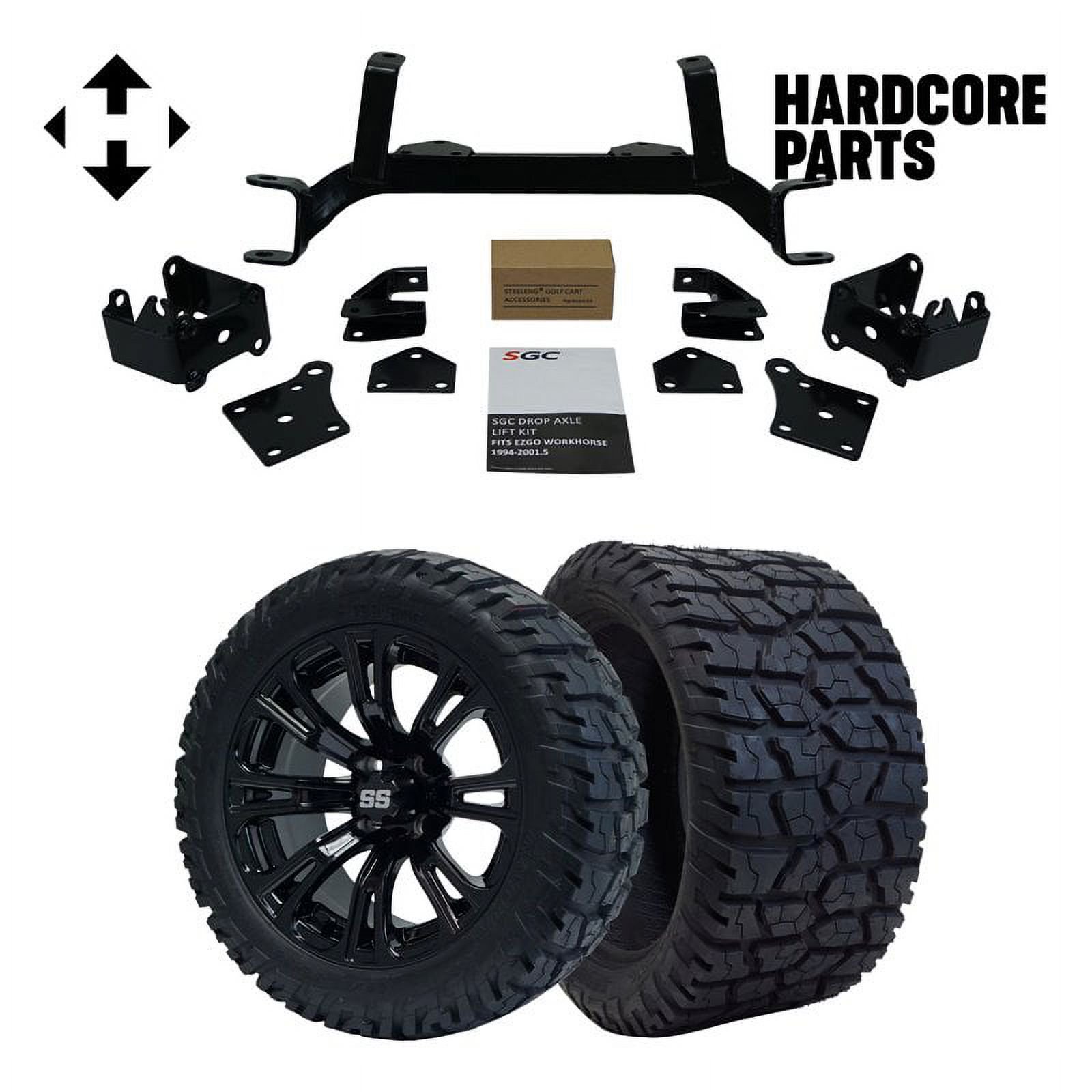 Hardcore Parts 6" Drop Axle Lift Kit for EZGO MPT/WORKHORSE 1200 (1994.5-2001.5) Golf Cart with 14" Black 'VAMPIRE' Wheels and 23"x10"-14 DOT rated All-Terrain tires