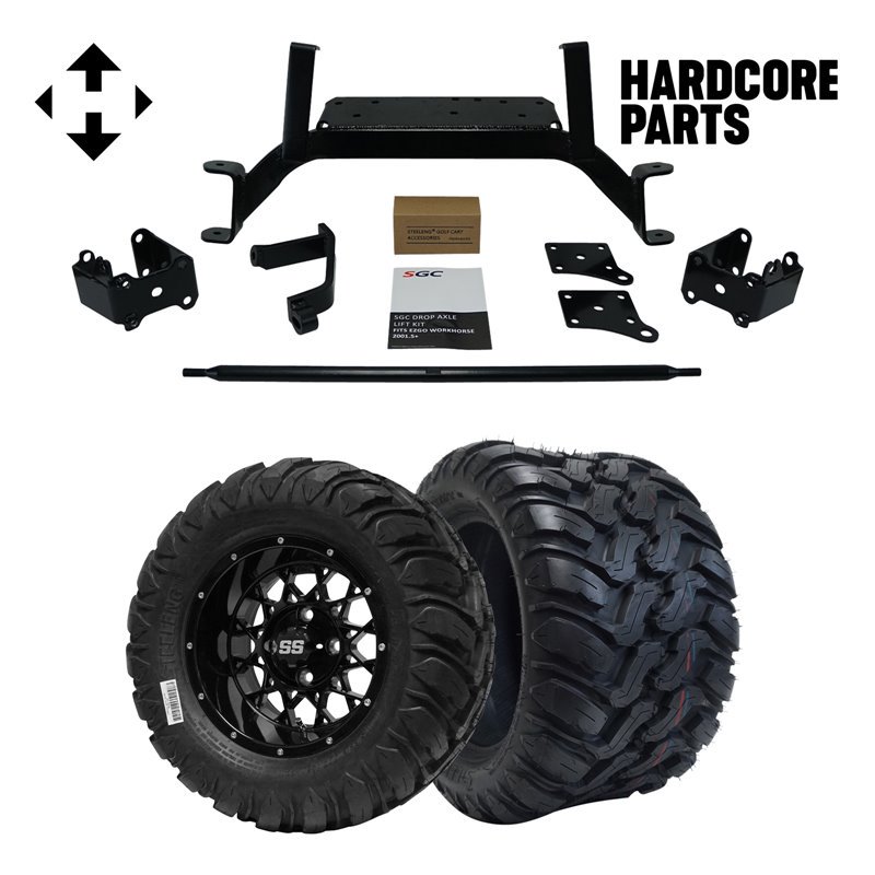 Hardcore Parts 6" Drop Axle Lift Kit for EZGO MPT/WORKHORSE 1200 (2001.5-2013) Golf Cart with 12" Black 'Night Stalker' Wheels and 22"x11"-12" DOT rated Mud-Terrain/All-Terrain tires