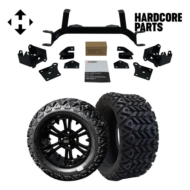 Hardcore Parts 6" Drop Axle Lift Kit for EZGO MPT/WORKHORSE 1200 (1994.5-2001.5) Golf Cart with 14" Black 'Voodoo' Wheels and 22"x10.5"-14 GATOR On-Road/Off-Road DOT rated All-Terrain tires